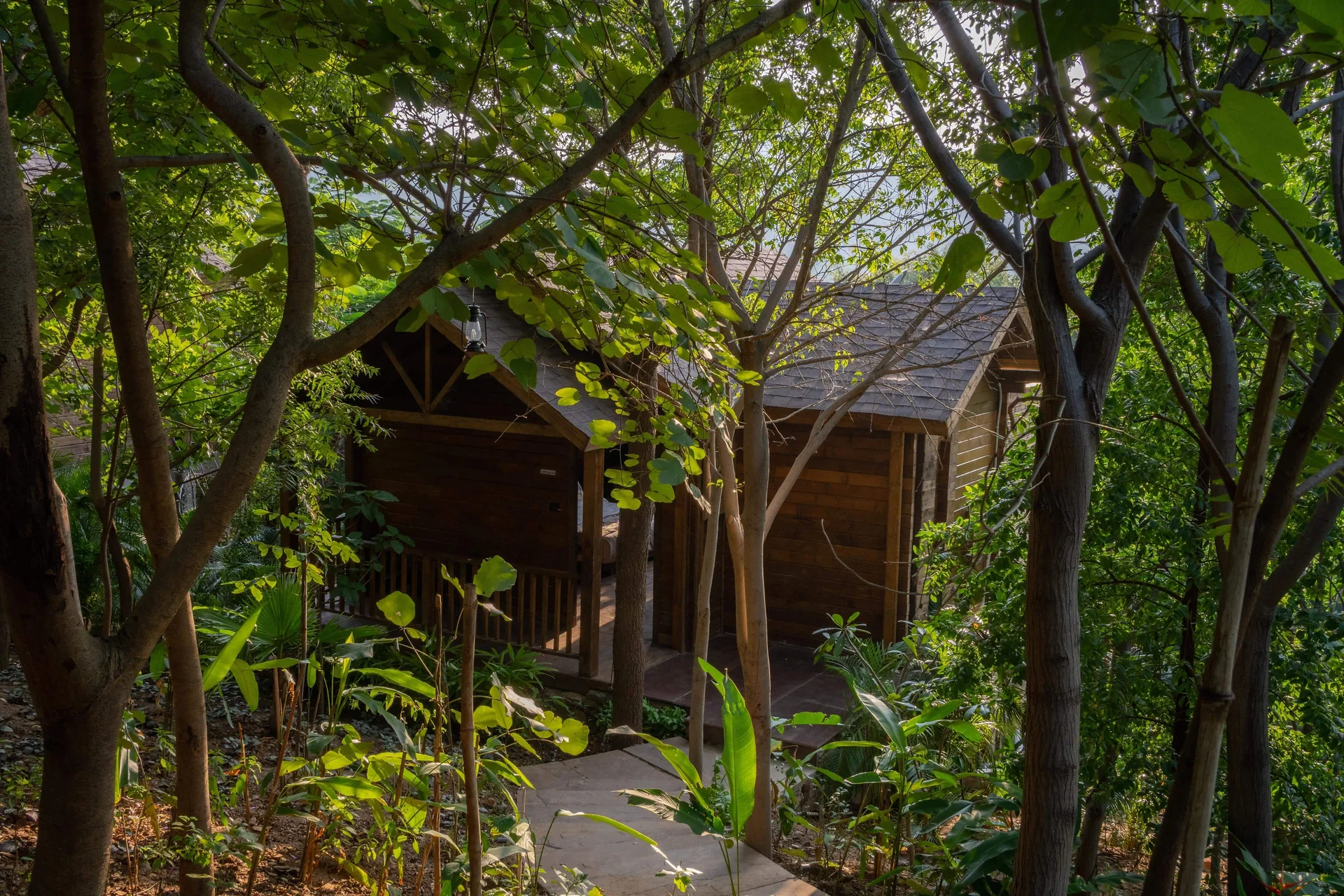 The accommodation consists of independent cottages with balconies, offering privacy and a nature-centric "resort" feel rather than a typical hotel block.