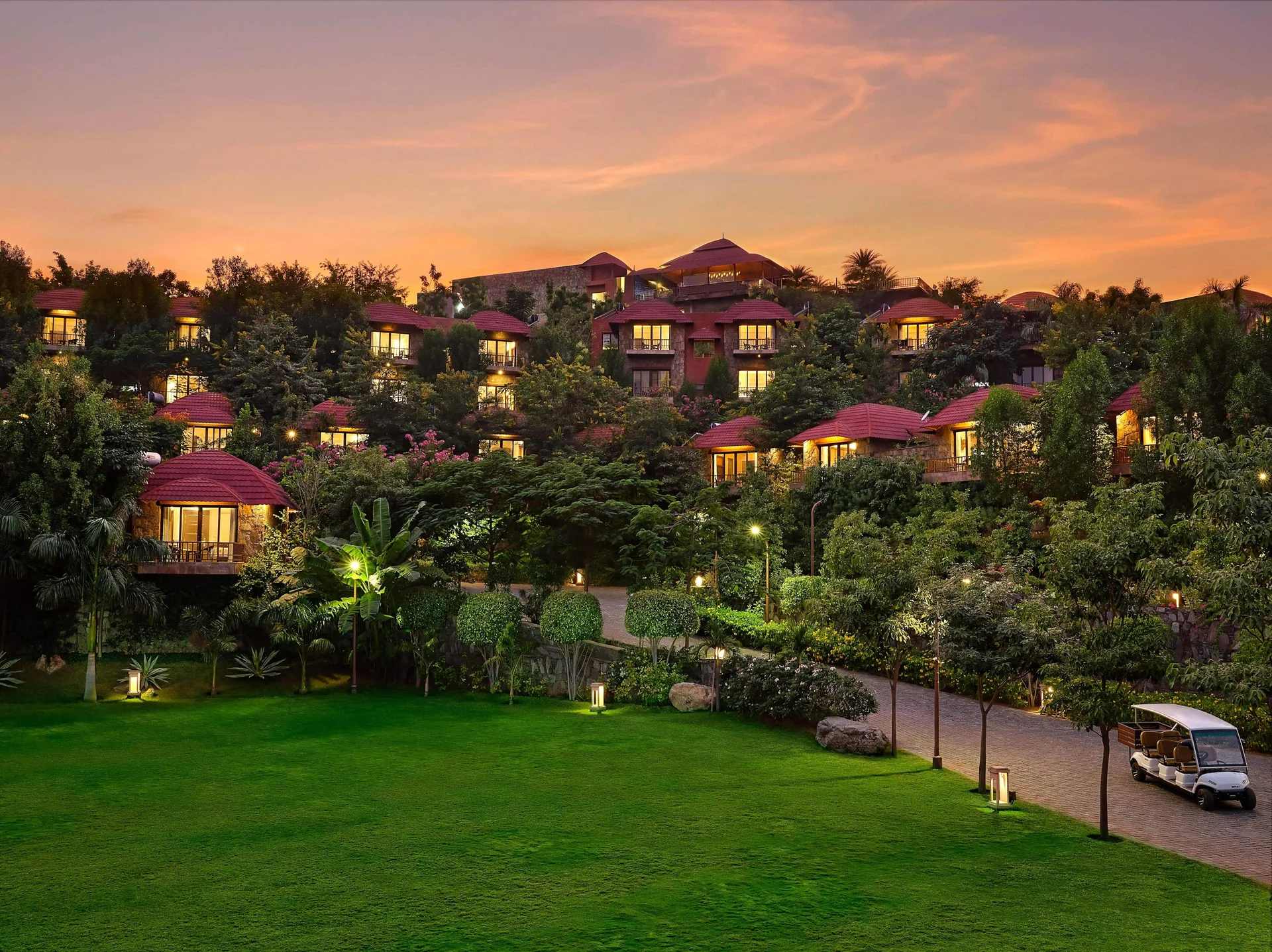 Ananta provides a fleet of golf carts (buggies) that run 24/7 to transport guests between their cottages and the event venues comfortably.