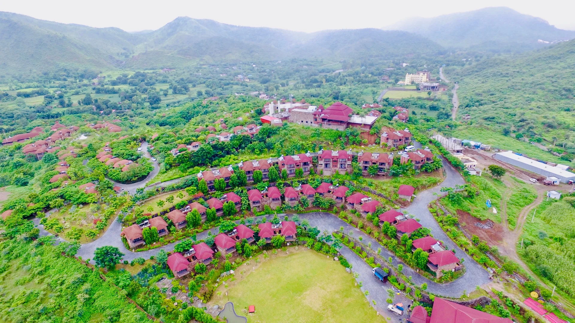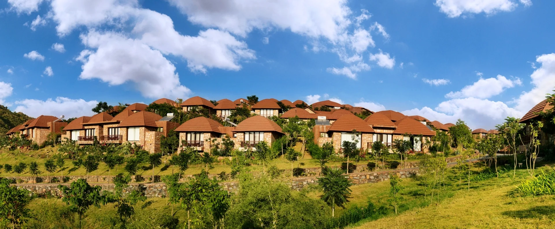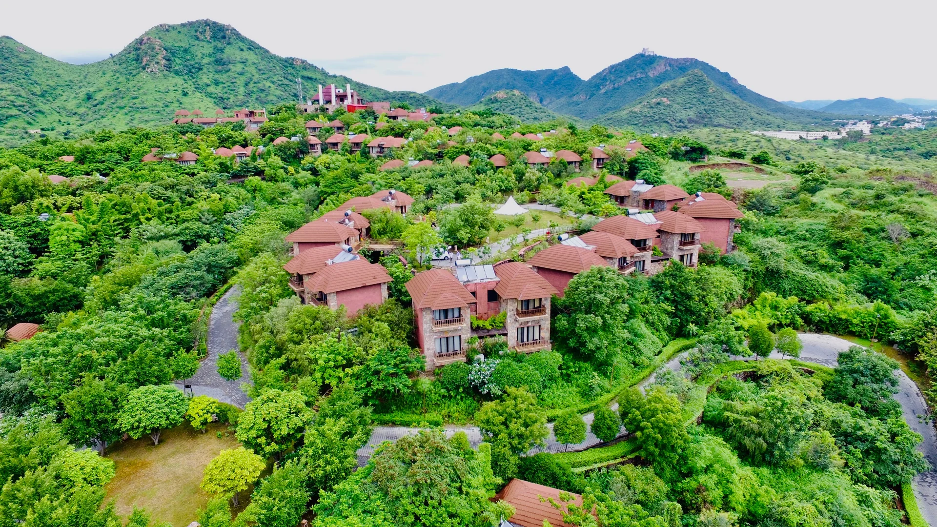 "A sprawling 90-acre resort nestled in the Aravallis, famous for its Balinese-style cottages and magnificent amphitheater."
