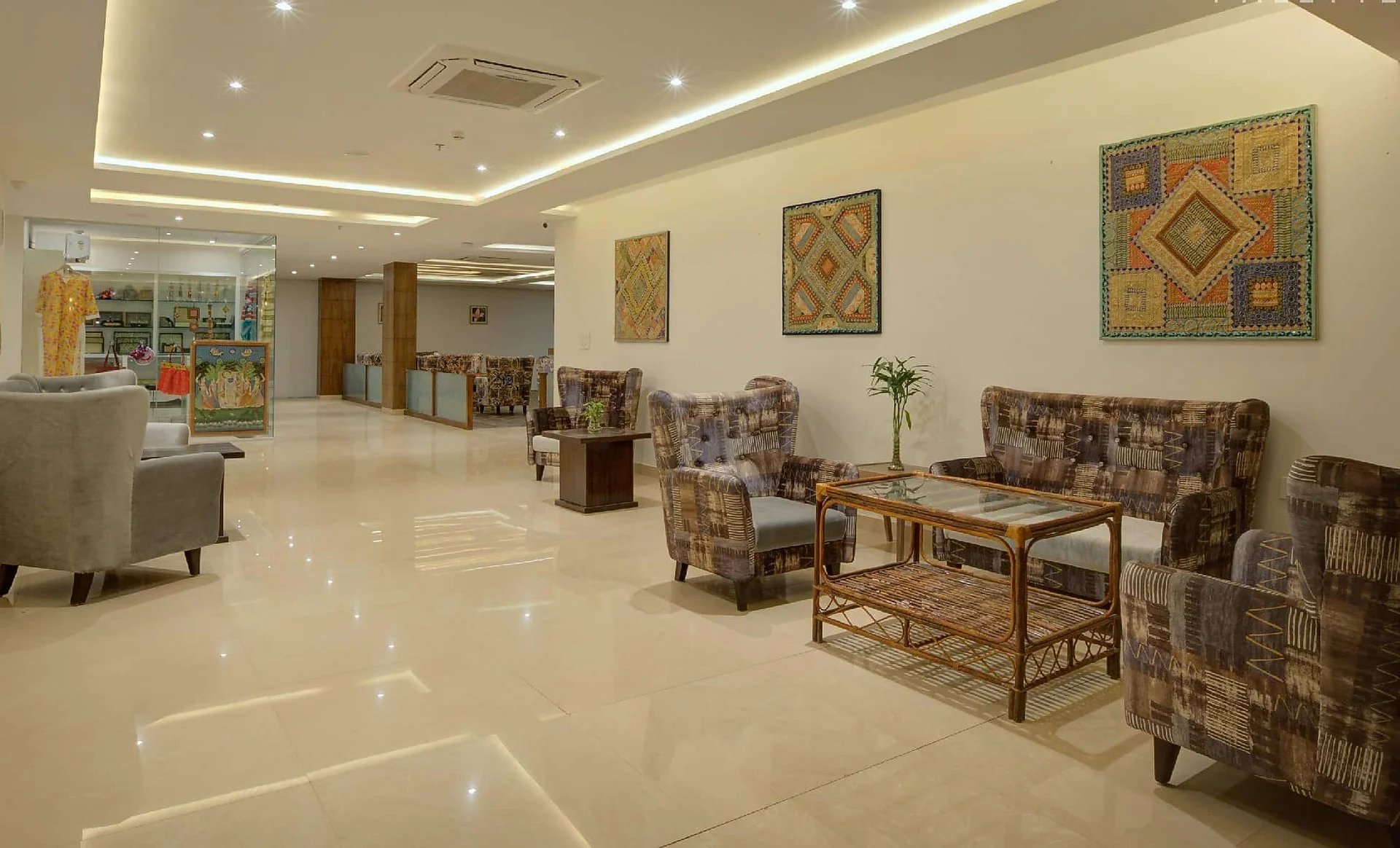 A spacious indoor hall with contemporary interiors, perfect for Sangeet nights or indoor receptions.