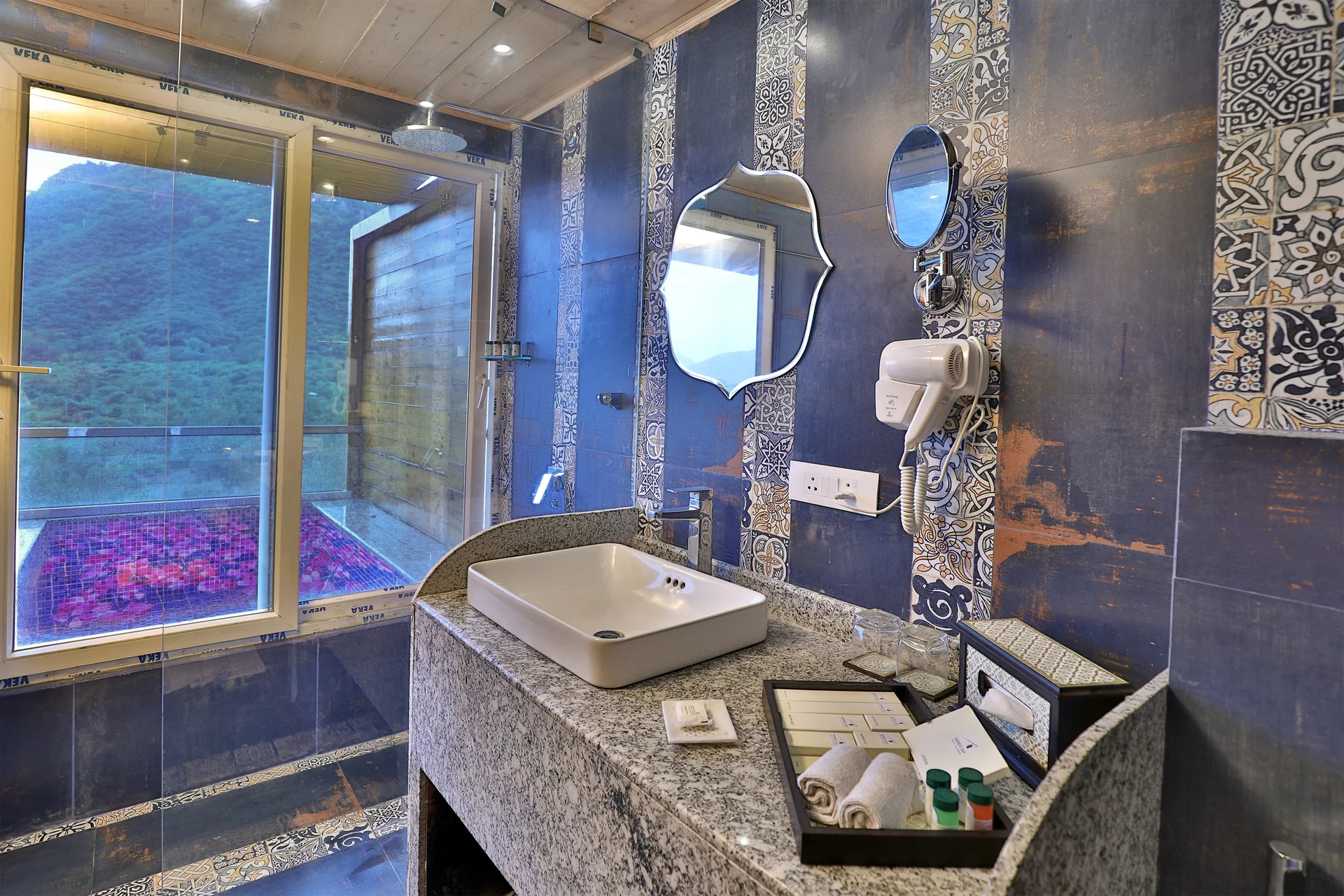 It is the closest luxury resort to the biological park and the Monsoon Palace, offering unparalleled views of the fortress on the hill.