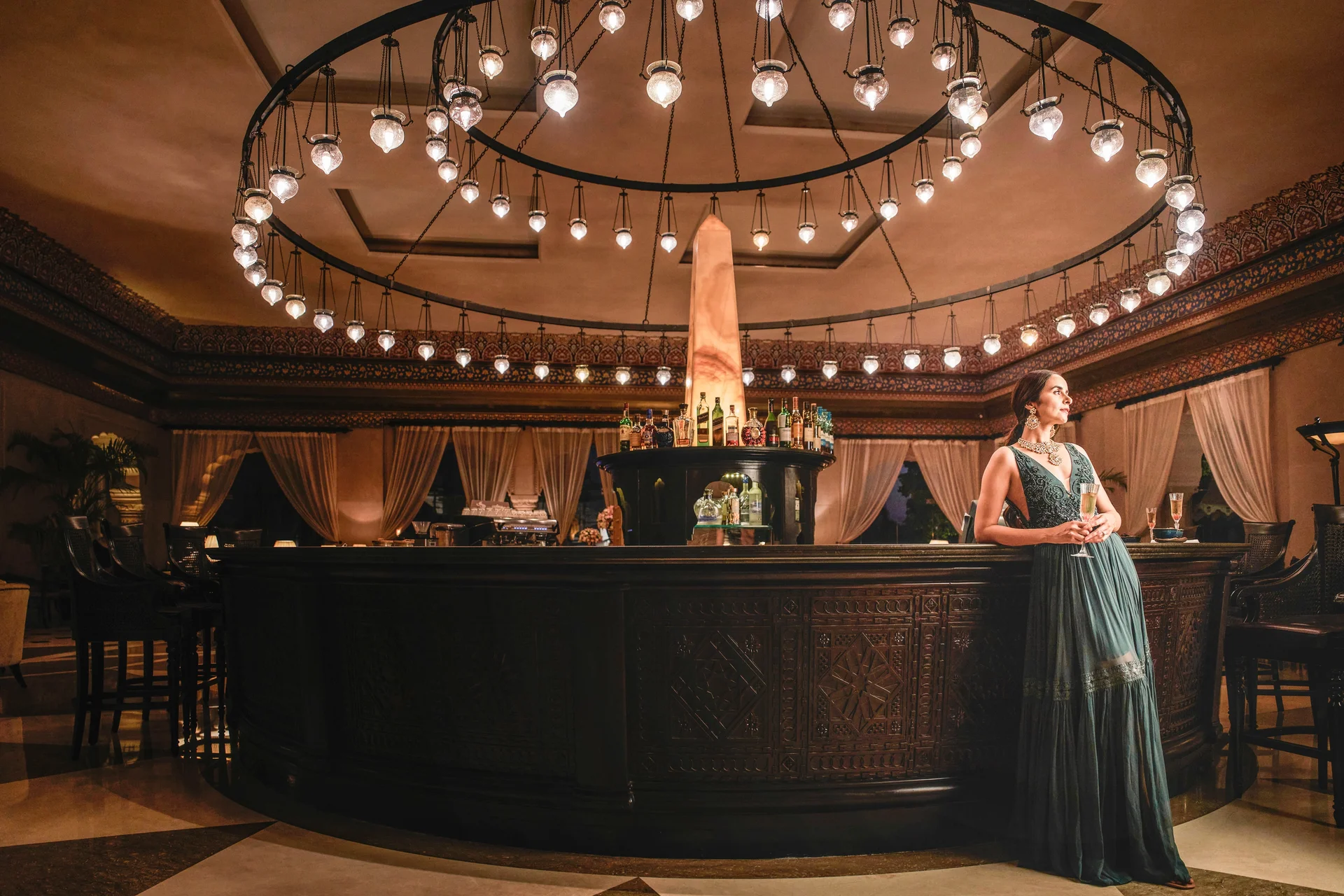 Anjum at Fairmont Jaipur is the hotels elegant tea lounge and bar, named star in Arabic, offering a celestial experience with ornate murals, stunning Aravalli views, and luxurious seating. It blends Fairmonts tradition with local flair, serving exquisite international teas, spicy Masala Chai from a live station, and bold signature cocktails in a palatial setting, perfect for relaxing conversations day or night.