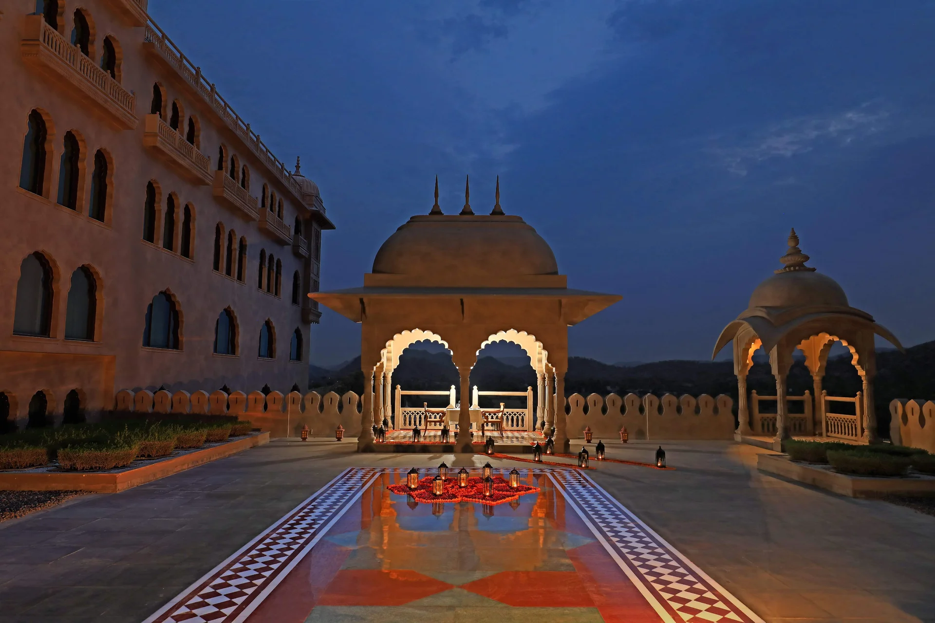 "A modern Mughal–Rajputana palace overlooking the Aravalli hills, Fairmont Jaipur is crafted for grand, royal destination weddings with immersive Rajasthani hospitality."
