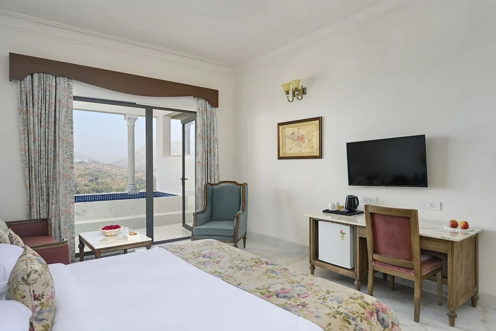 Located in the Bhuwana area, it is easily accessible from the main city and the Nathdwara highway. It is about 25-30 minutes from Maharana Pratap Airport.