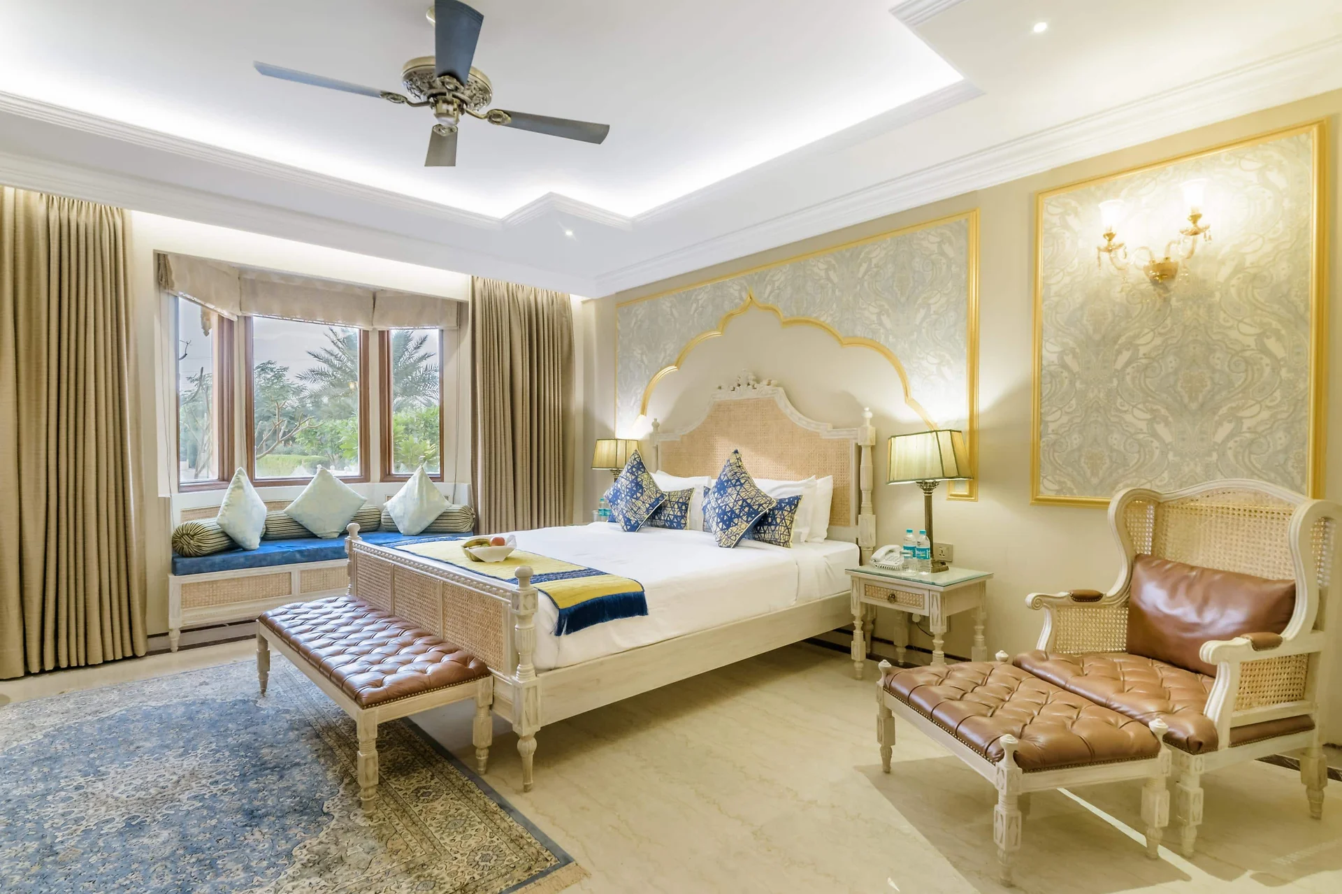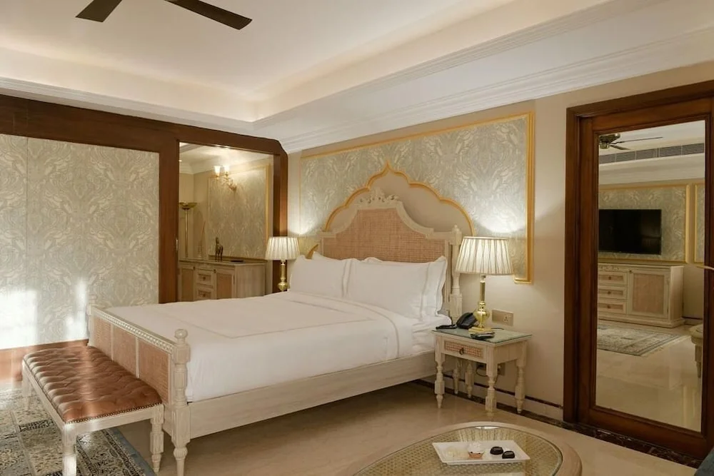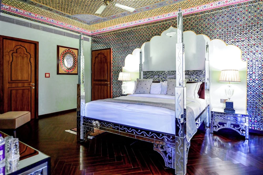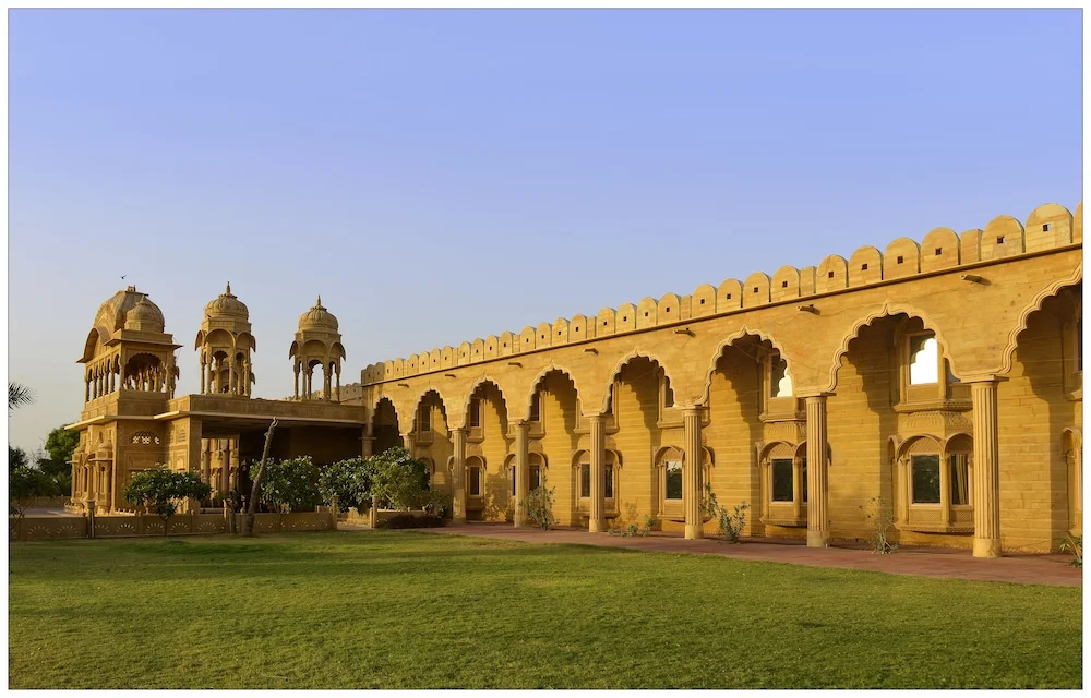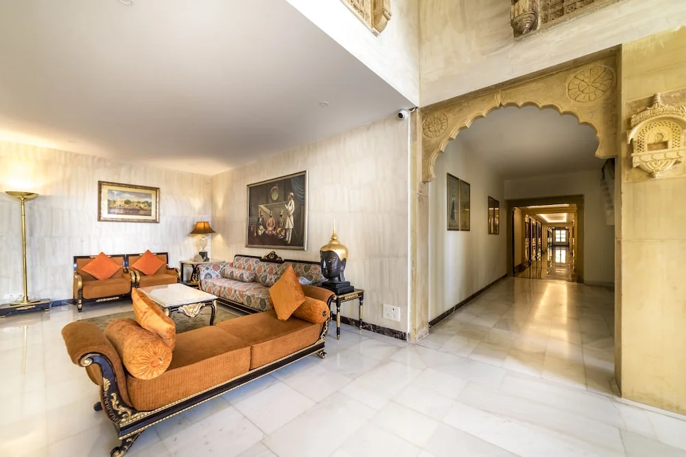 "A regal fortress hotel known for its intricate stone carvings and 450-year-old architectural legacy, offering an authentic royal experience."