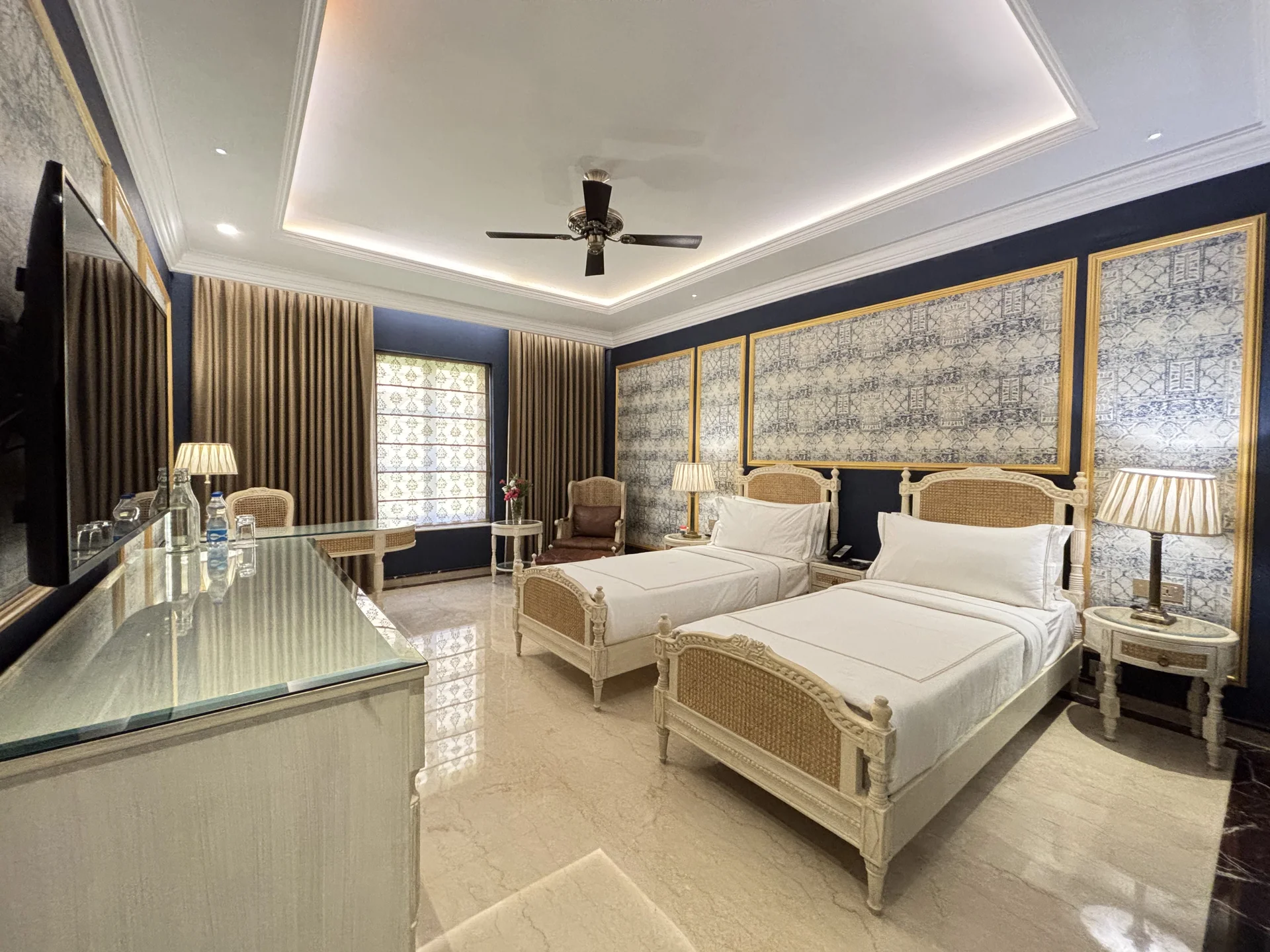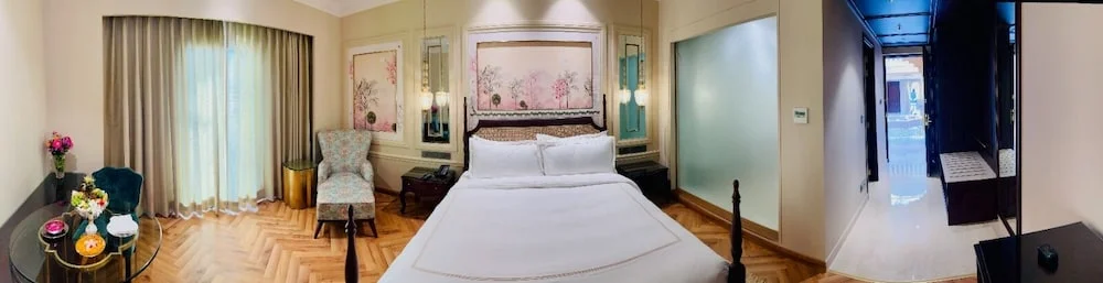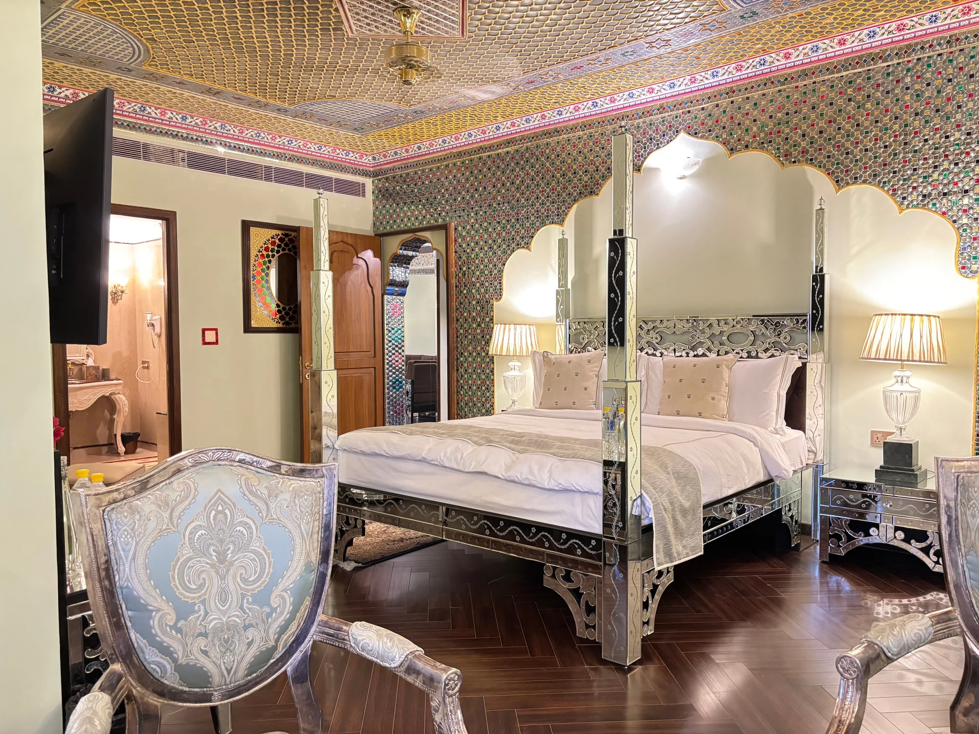 "A regal fortress hotel known for its intricate stone carvings and 450-year-old architectural legacy, offering an authentic royal experience."