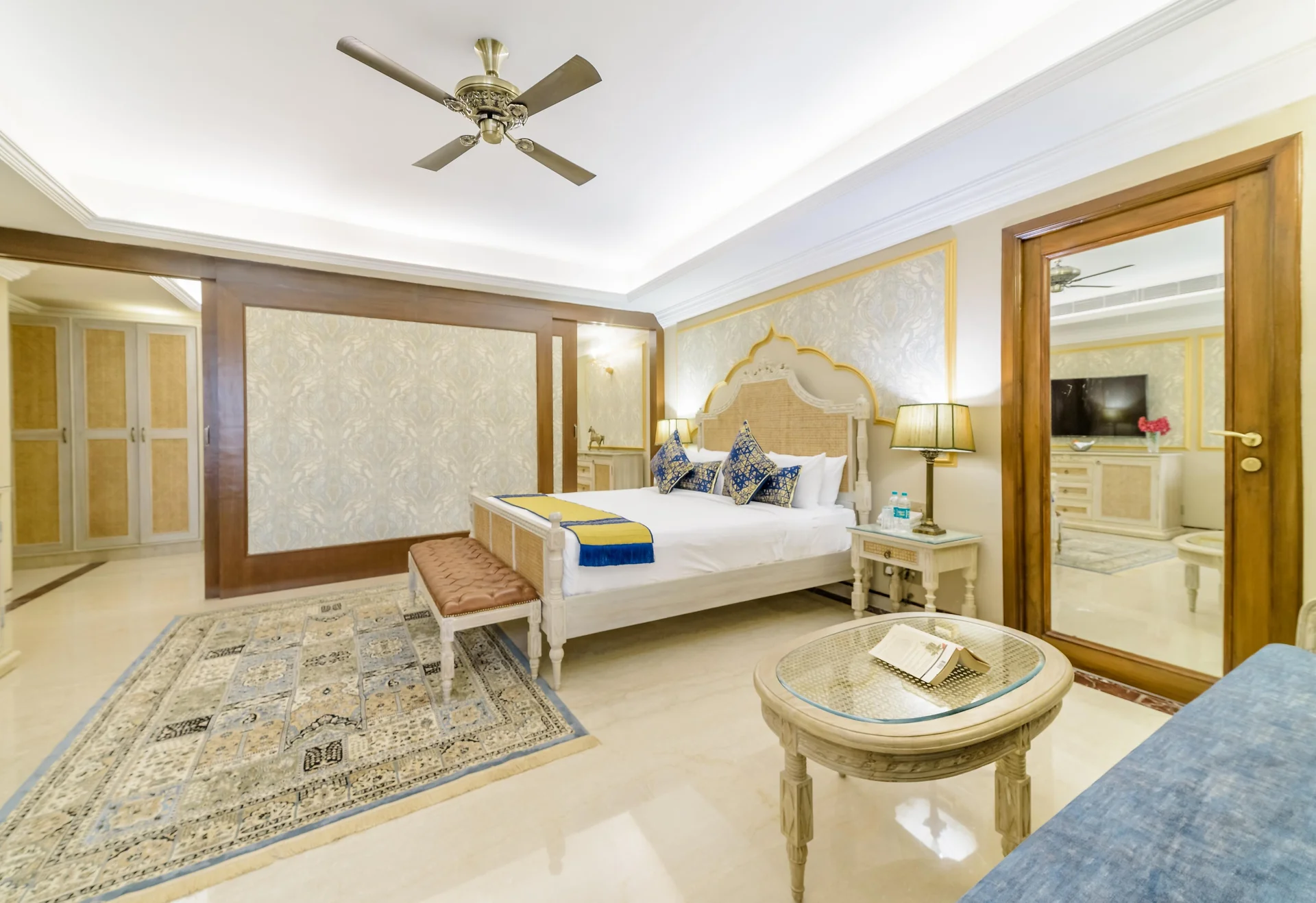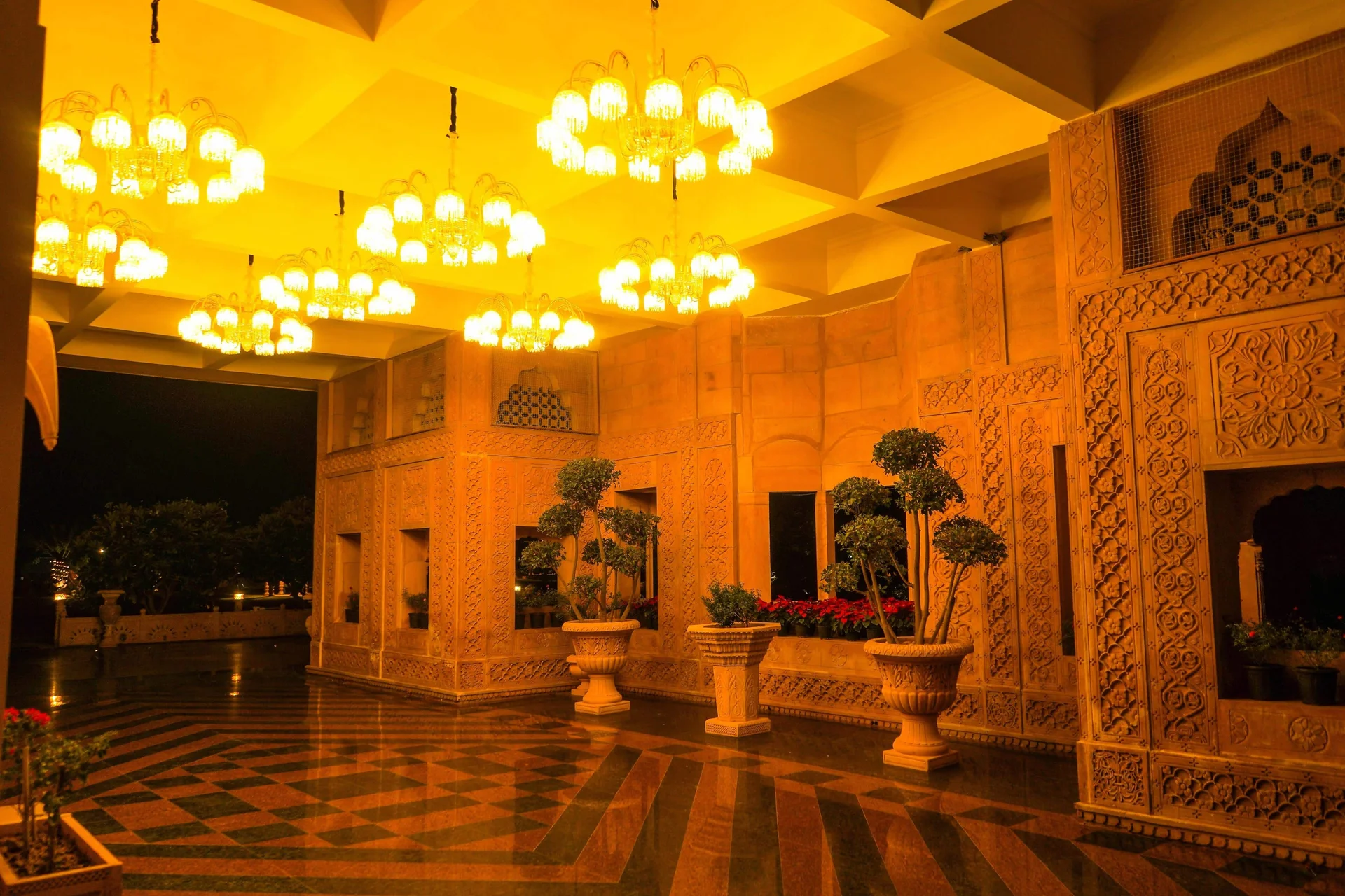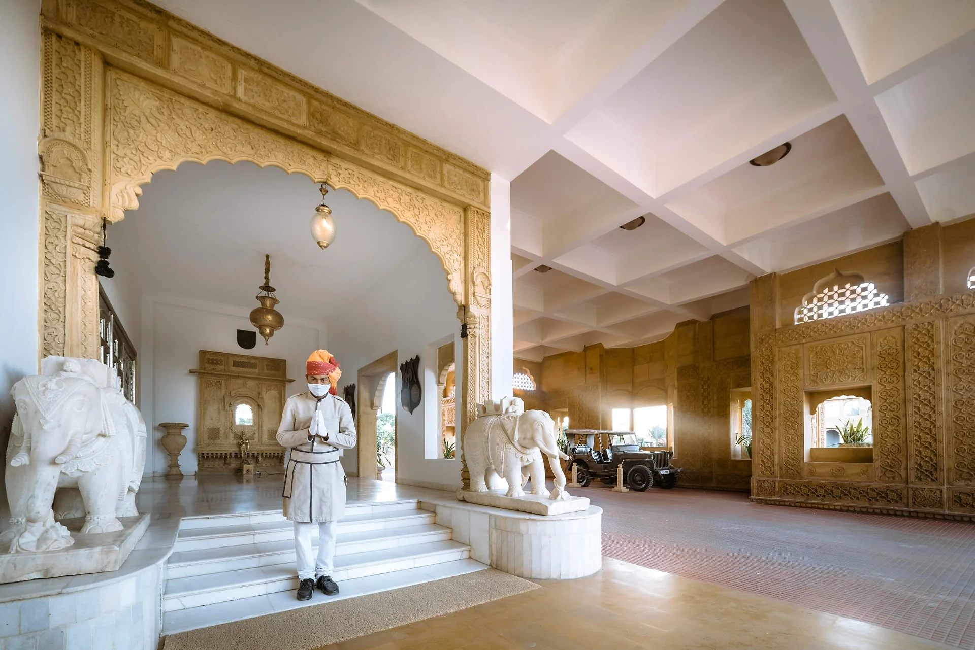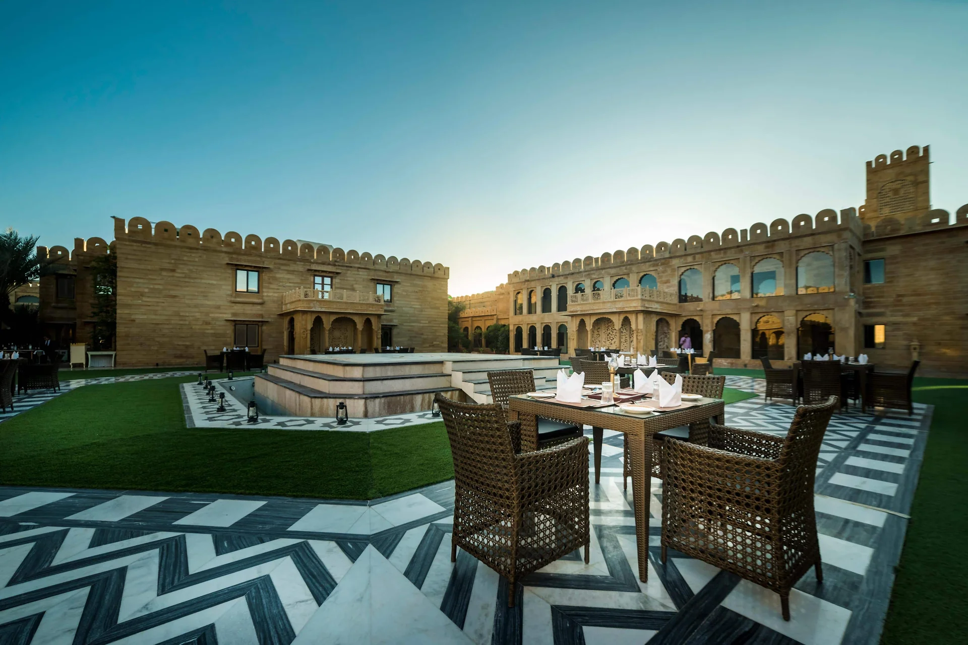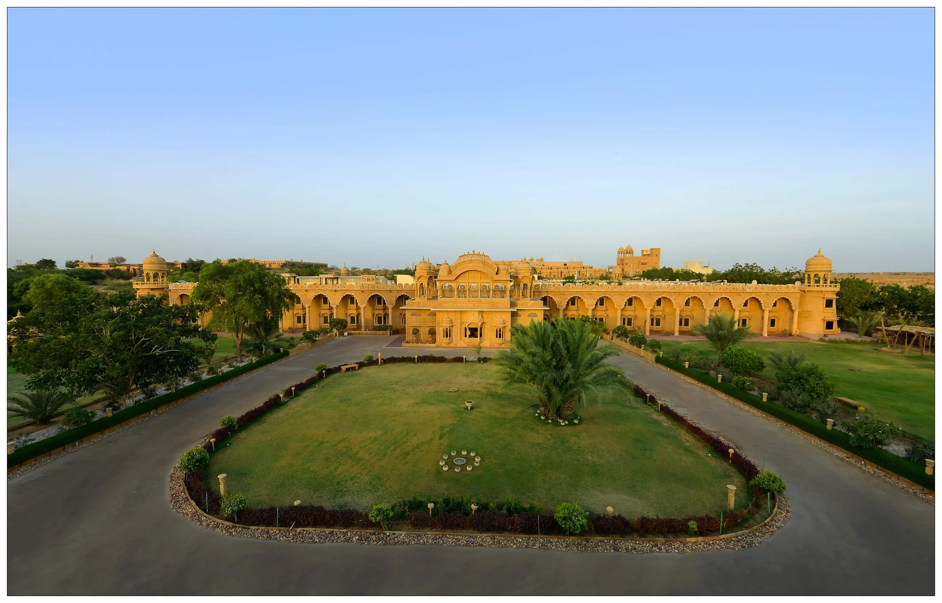 Fort Rajwada is a successful attempt to rediscover and restore the art of building in the traditional style of the Golden City. Spread over 6 acres, this fortress hotel is adorned with intricate stone carvings and "Jharokhas" (balconies) hand-crafted by local artisans. It feels less like a hotel and more like a living museum of Rajputana art. With its grand central courtyard, ornate interiors designed by celebrated opera set designer Ms. Stephanie Engeln, and warm hospitality, it offers a deeply cultural and royal backdrop for a destination wedding.