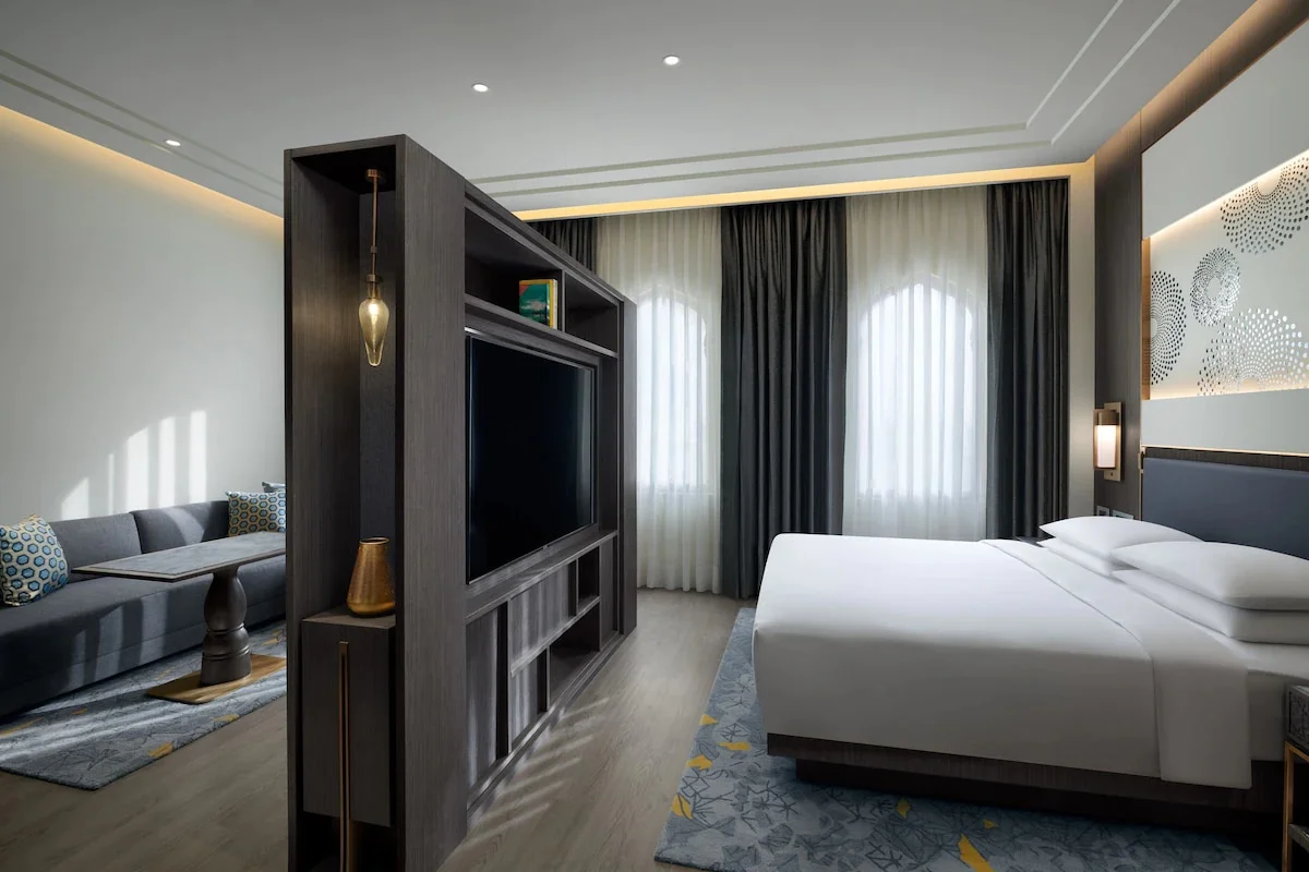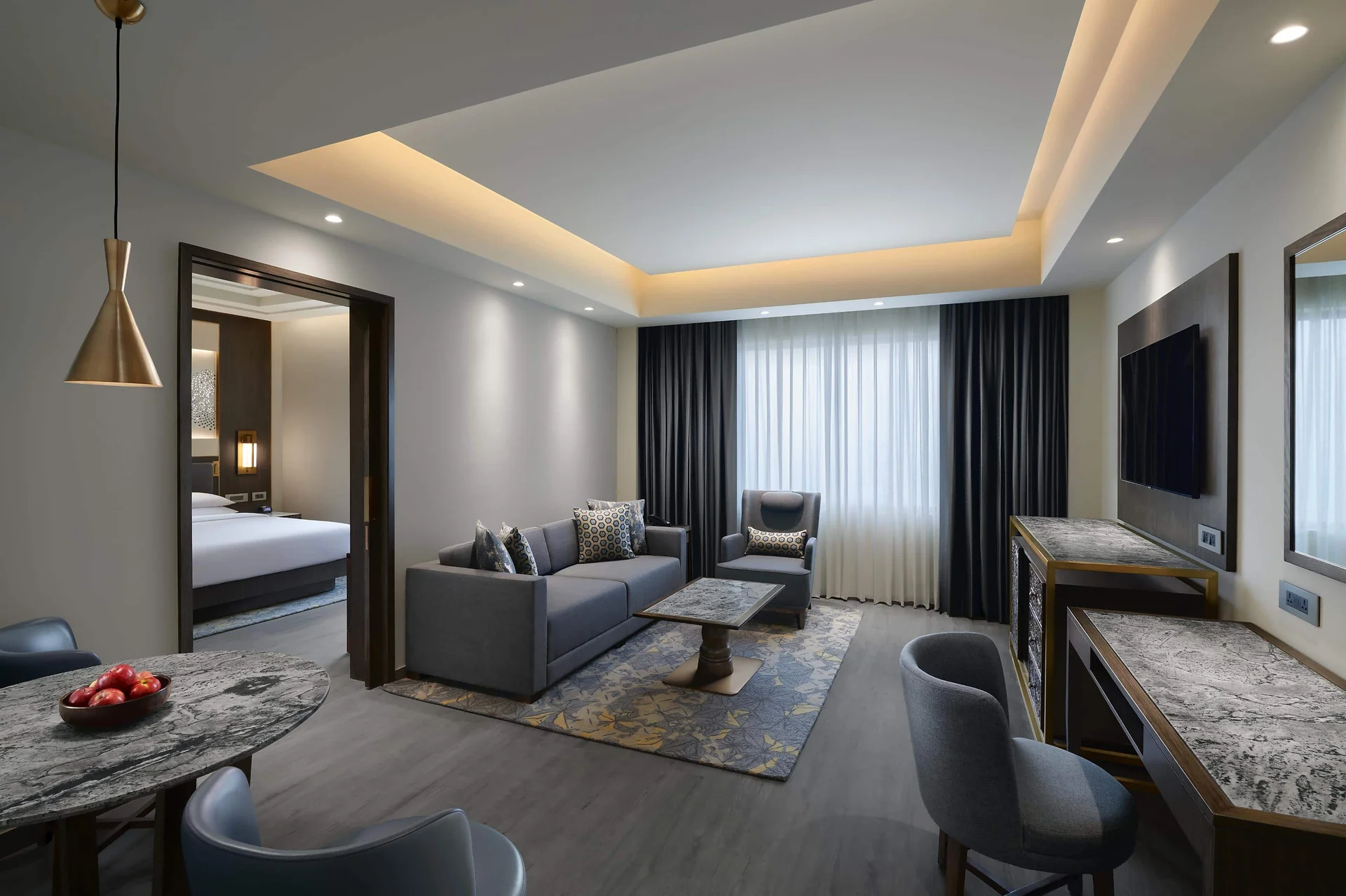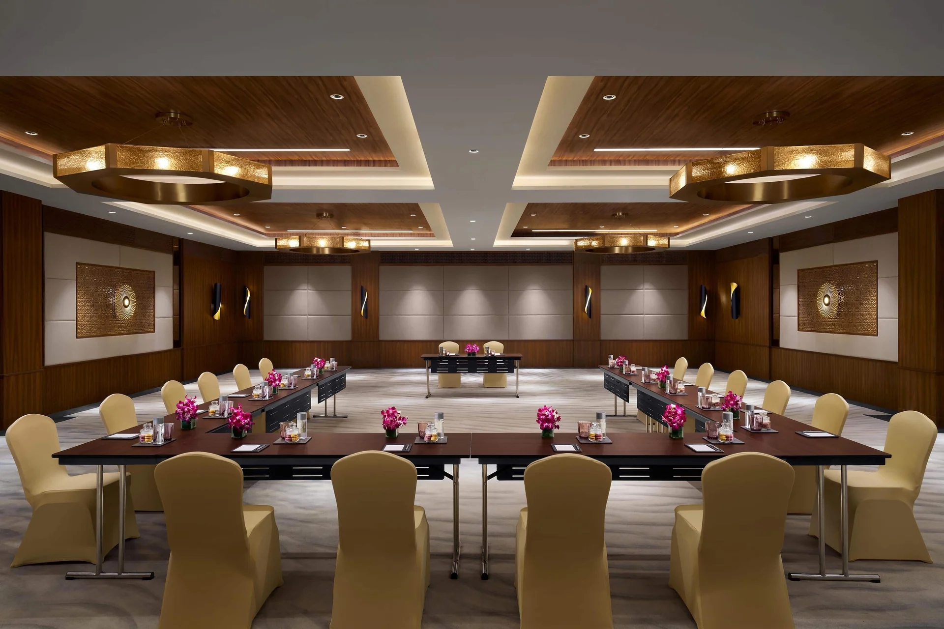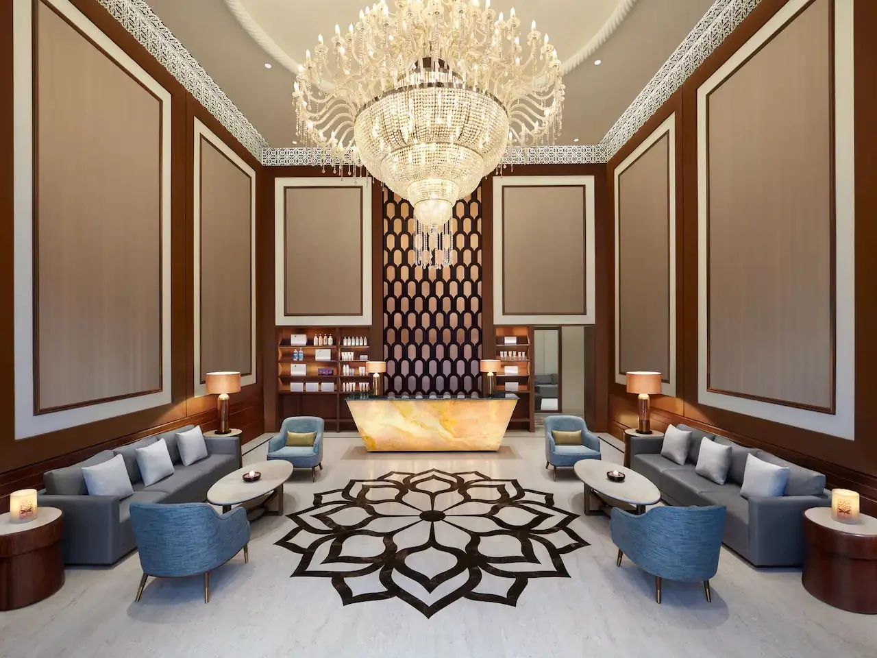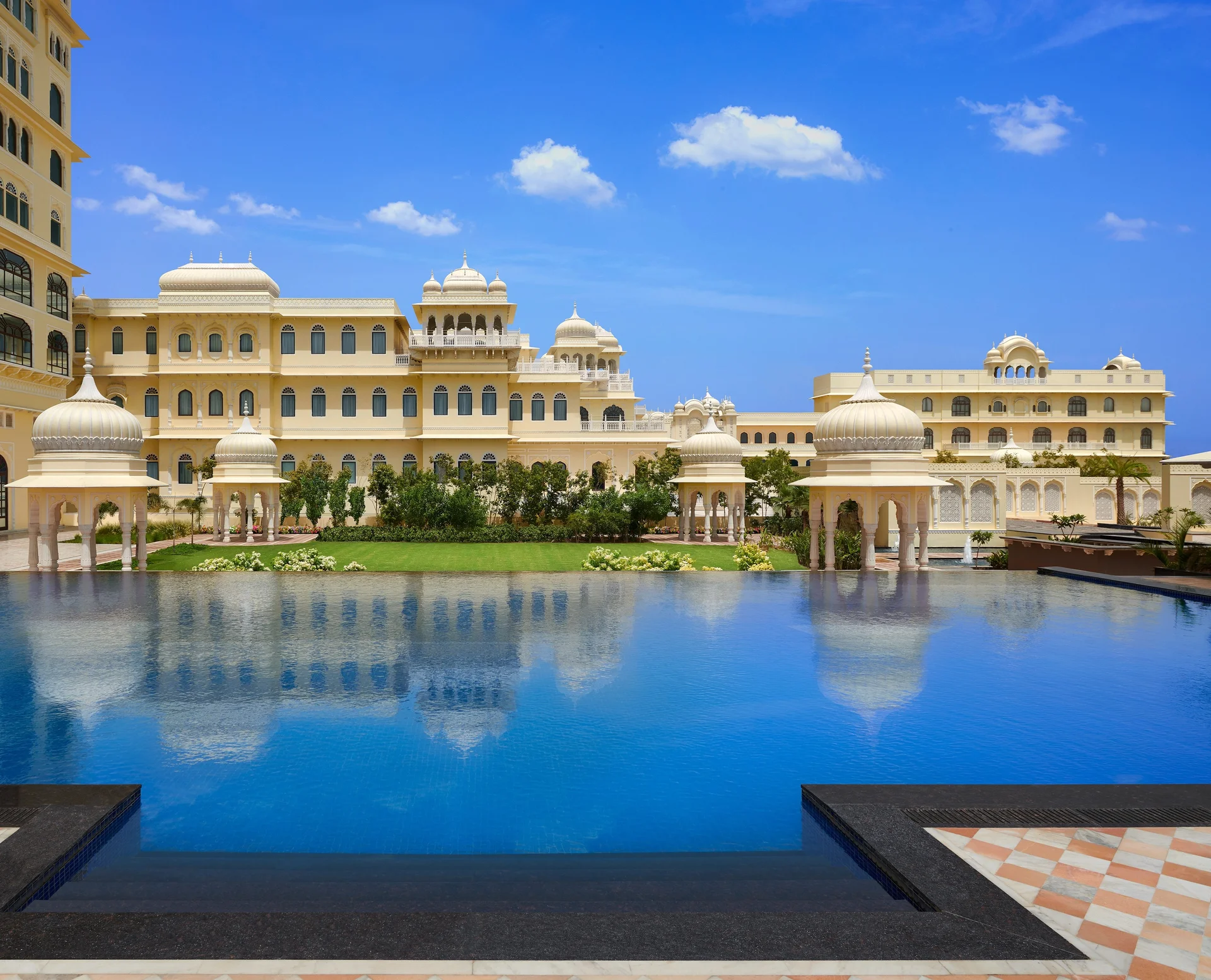 Hyatt Regency Jaipur Mansarovar is an architectural marvel that pays homage to Rajasthan's royal heritage while offering world-class modern luxury. Inspired by the majestic Madhavendra Bhawan of Nahargarh Fort, the hotel features 2,700 hand-carved marble pillars and traditional "Jharokas". At its heart lies the "Sheetal Aangan", a grand central courtyard that naturally cools the surroundings. It is a perfect venue for couples who want the grandeur of a palace wedding with the comfort and reliability of the Hyatt brand.