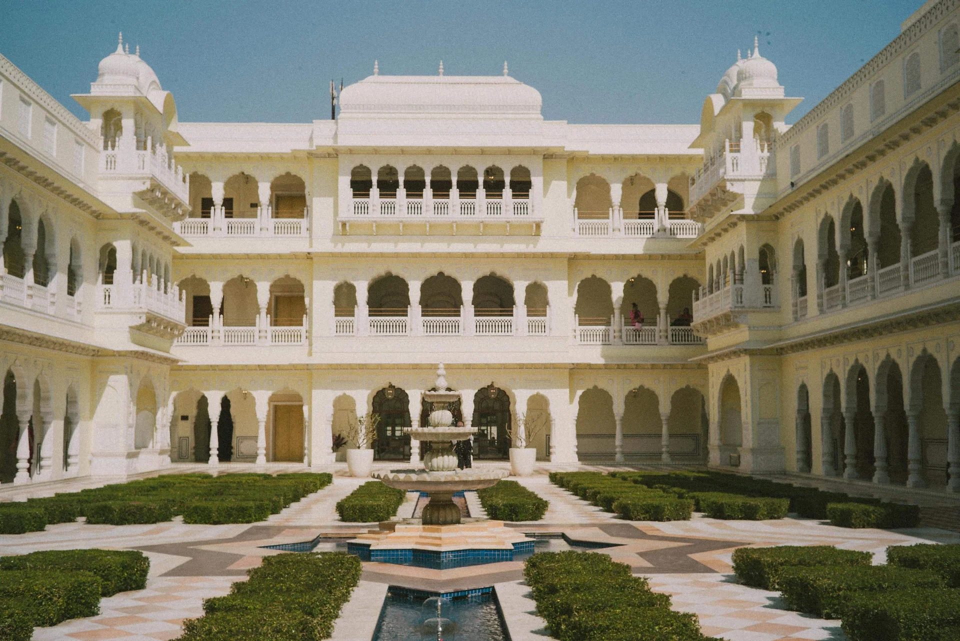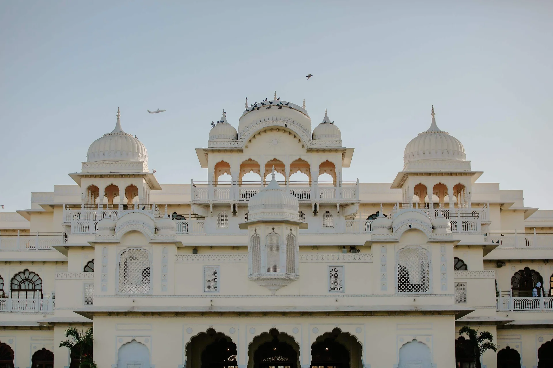 Located in the quieter Mansarovar area, it is very well connected to the airport (just a 15-20 minute drive), making it extremely convenient for destination weddings with fly-in guests.