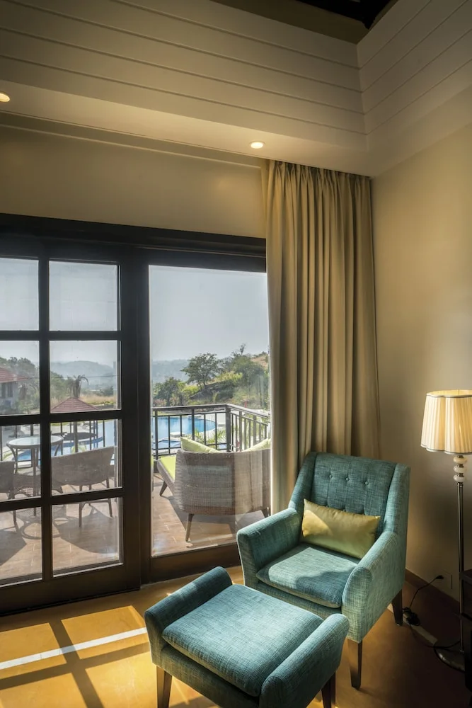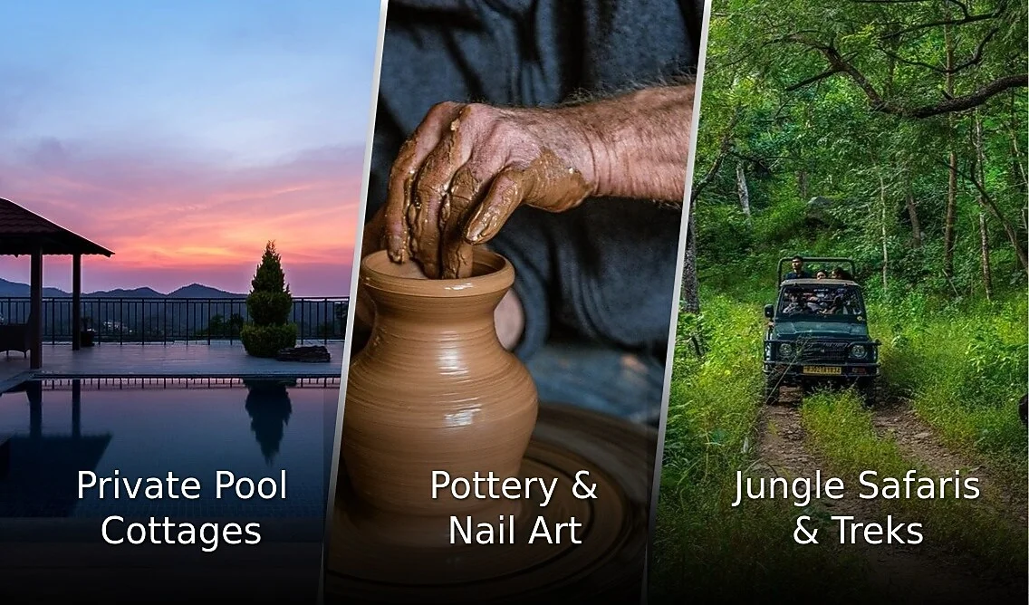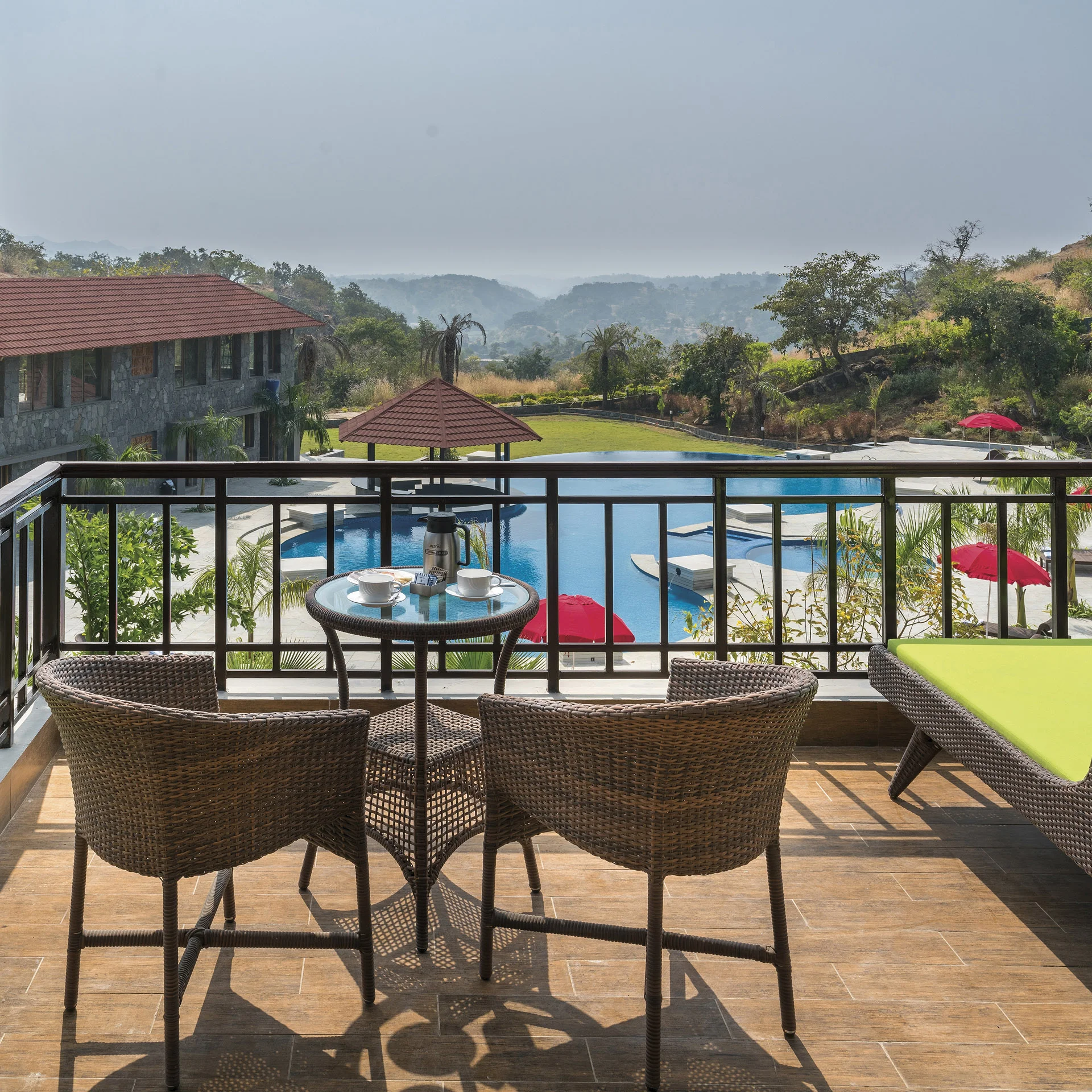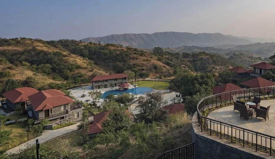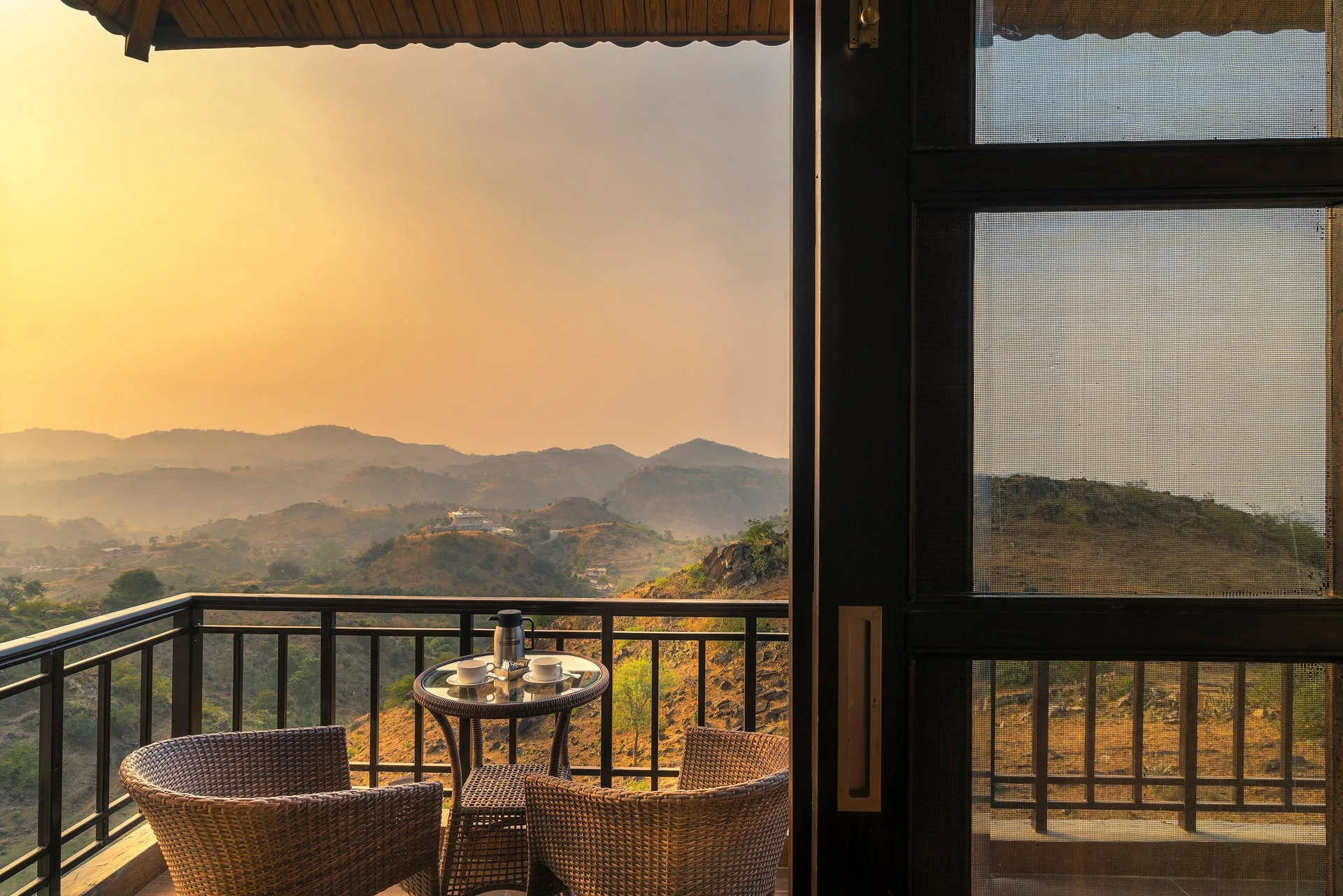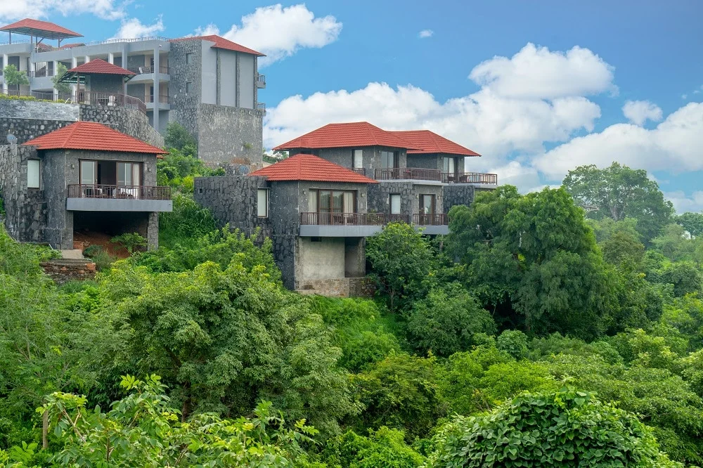 "A serene nature retreat set amidst 11 acres of Aravalli hills, offering breathtaking valley views and cottage-style luxury."