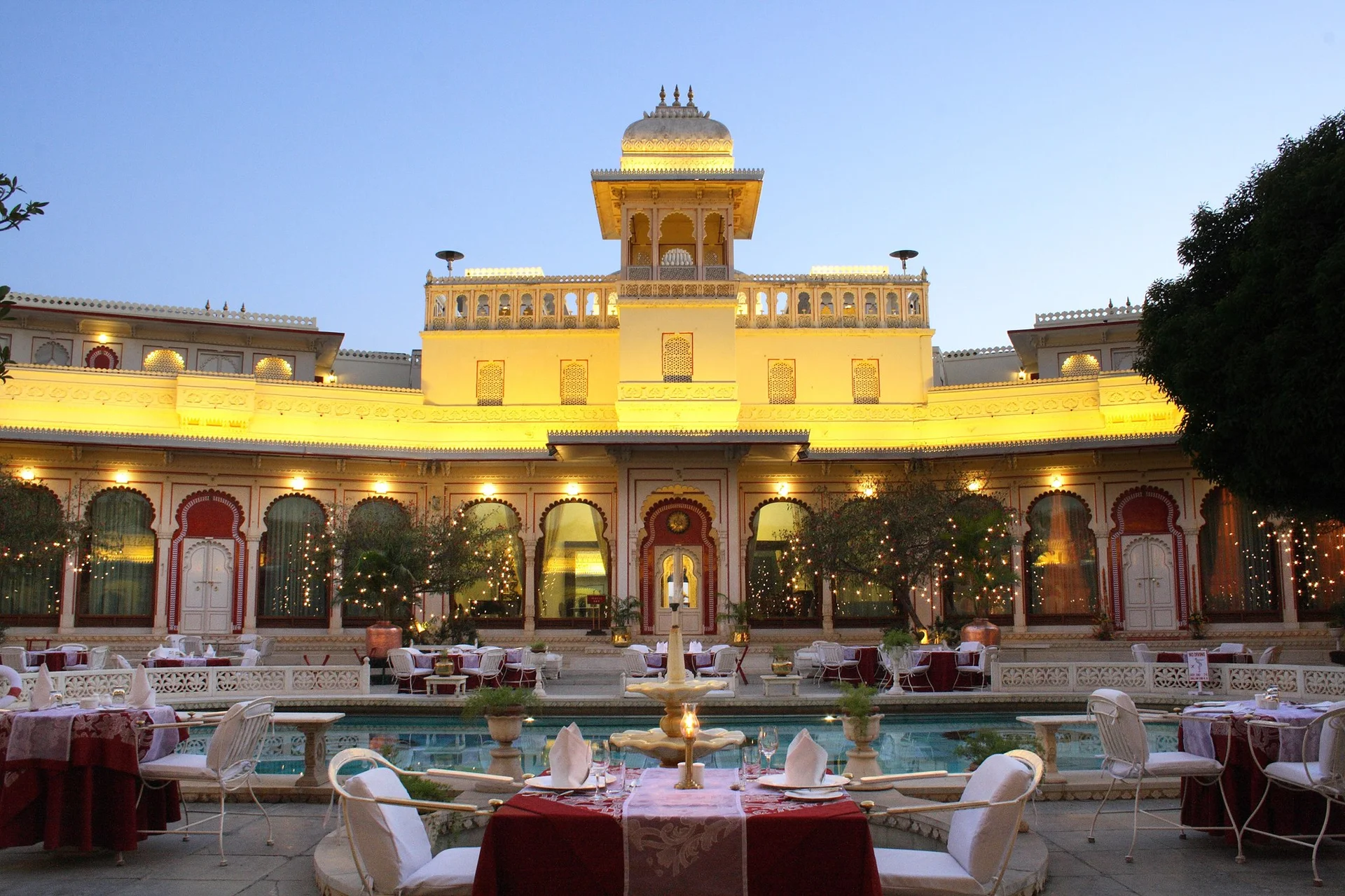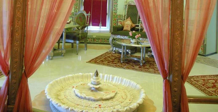 The most iconic venue in the palace, set around a marble swimming pool with lighted fountains, perfect for a glamorous cocktail or Sangeet.