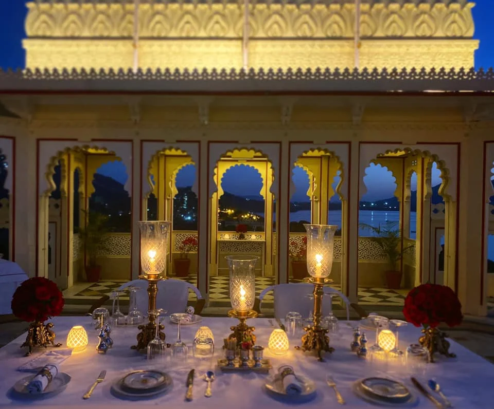 Shiv Niwas Palace is where royalty stays. Originally built as a crescent-shaped guest house for the Maharana of Udaipur, it is now a Grand Heritage Hotel managed by the HRH Group of Hotels. Located within the majestic City Palace complex, it offers an ambience that is undeniably aristocratic. It is famous worldwide for its spectacular marble "Pool Deck," which featured prominently in the James Bond movie "Octopussy." With its hand-painted frescoes, inlay work, and views of Lake Pichola, it offers a wedding experience that is authentically royal and steeped in history.