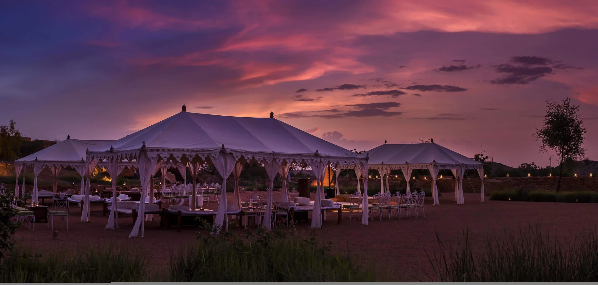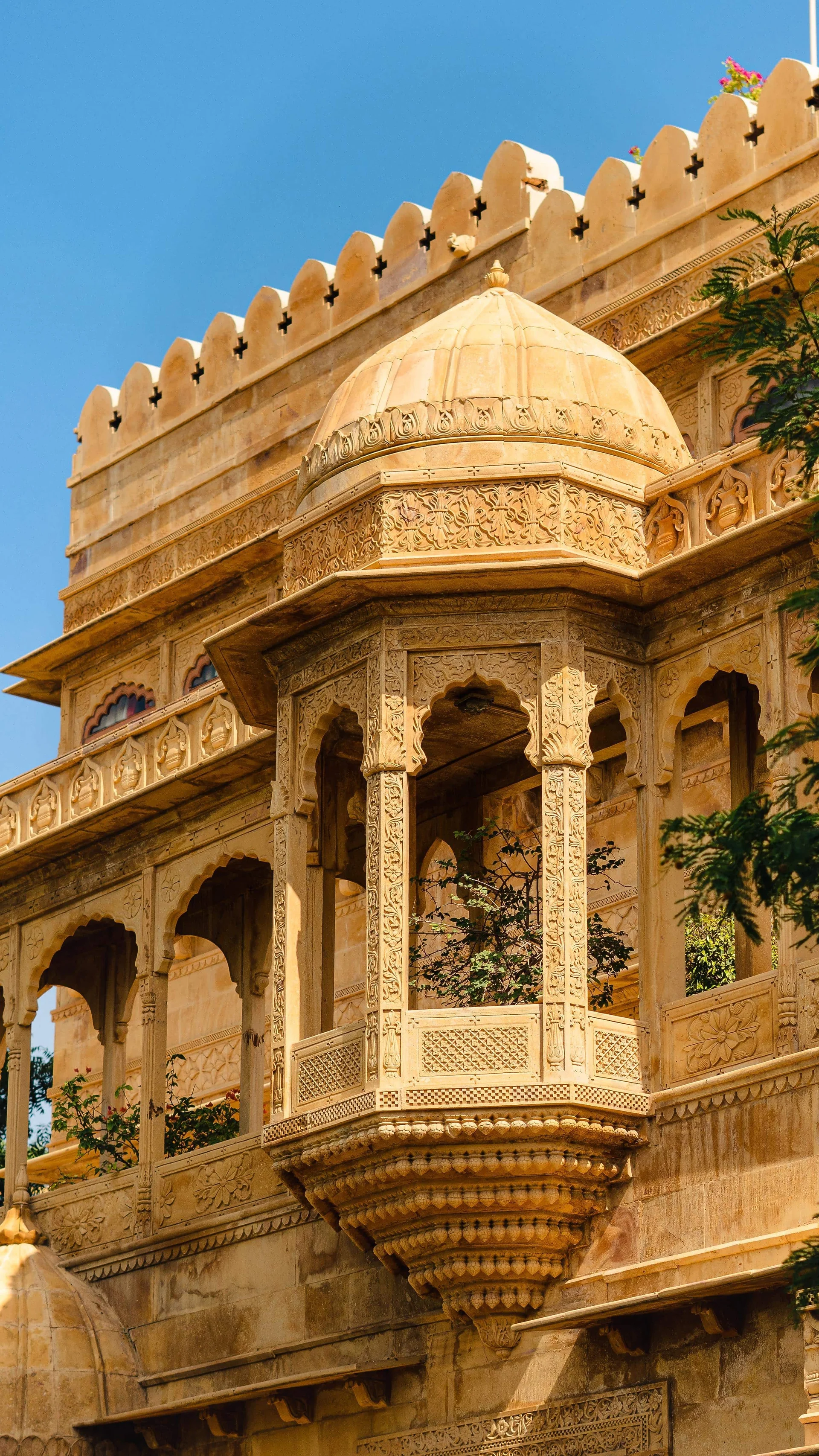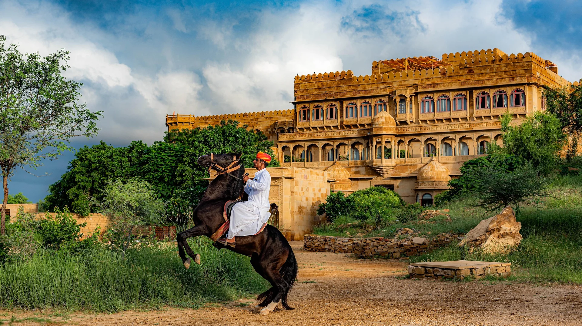 "A magnificent fortress hotel in the Thar Desert, offering a legendary wedding experience with sand dunes, courtyards, and unmatched royalty."