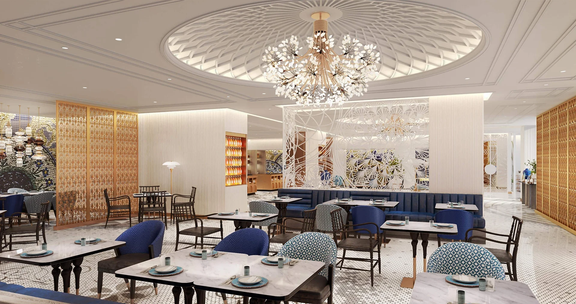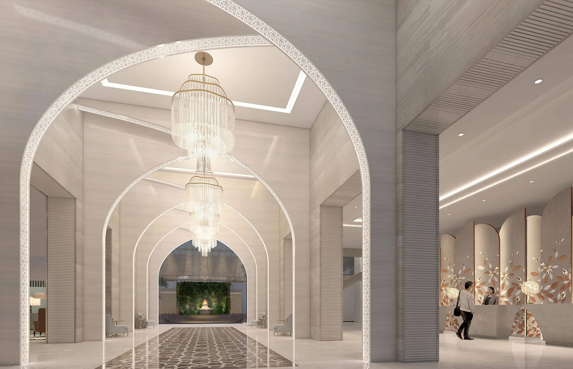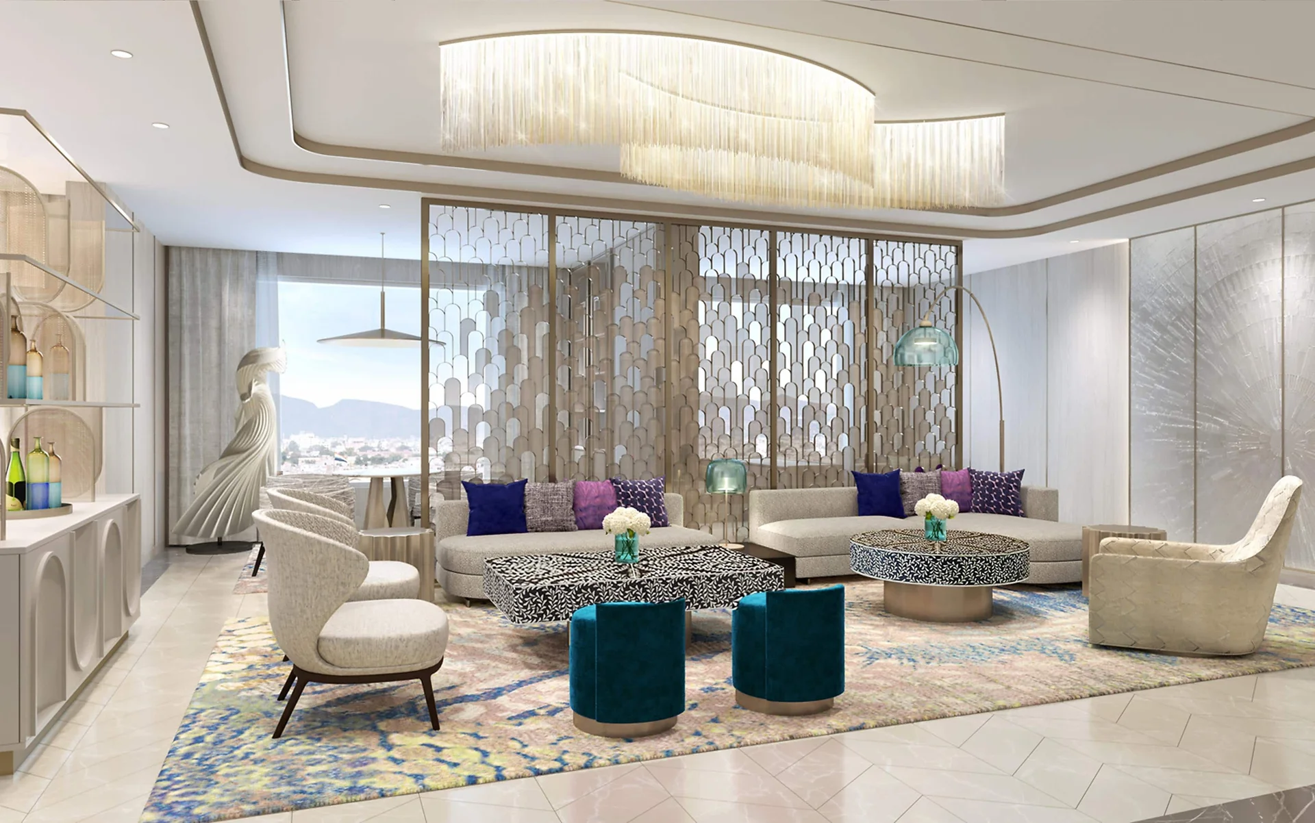 "A new oasis of modern luxury near Amer Fort, featuring Jaipur's largest pillarless ballroom and design inspired by the royal peacock motifs."