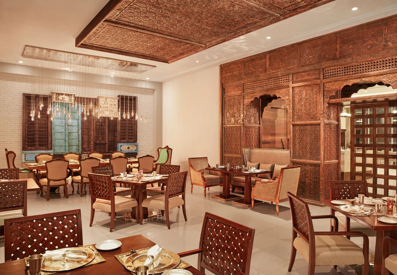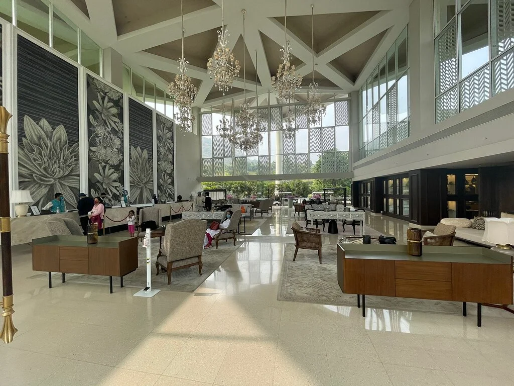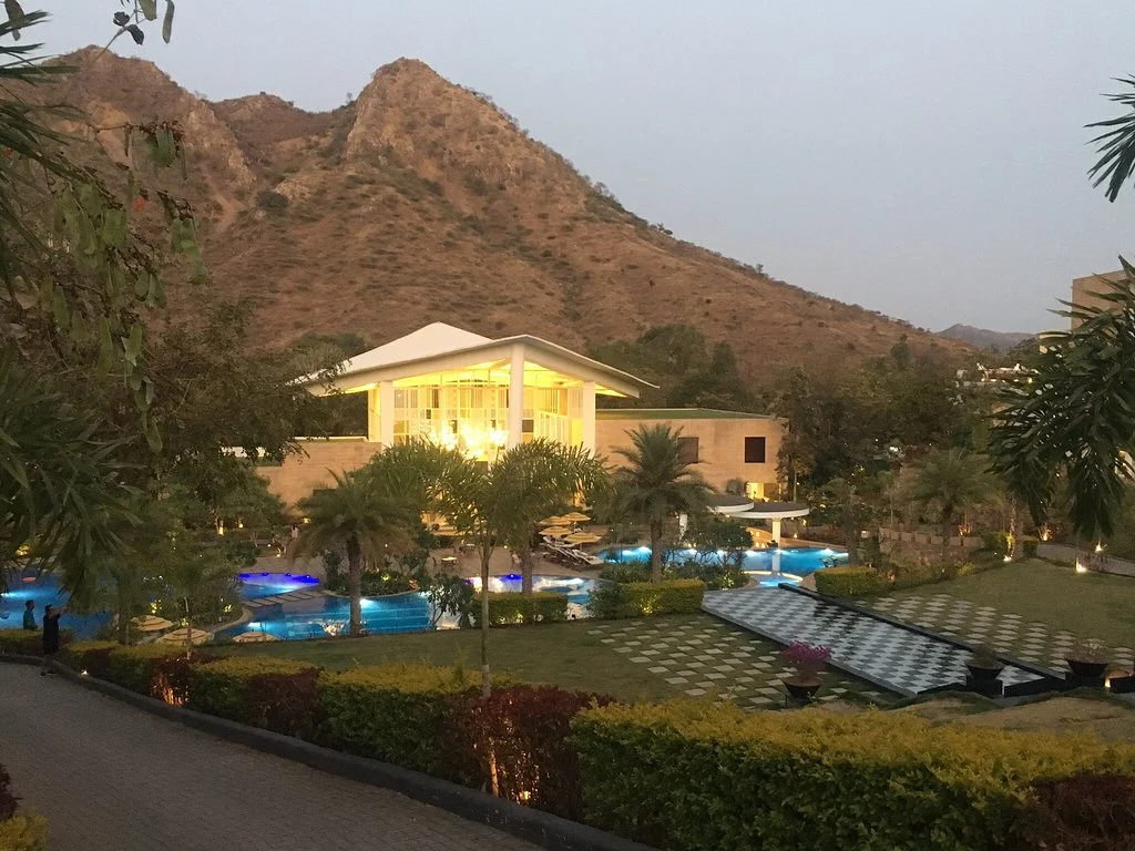 Taj Aravalli Resort & Spa is a modern sanctuary inspired by the dramatic landscape of Rajasthan. Spread across 27 acres at the foothills of the jagged Aravalli mountain range, it feels like a private oasis. The resort is famous for its unique architecture that blends traditional Mewari style with contemporary design, featuring luxury tents that offer a glamping vibe. With one of the largest pillar-less ballrooms in the city and vast manicured lawns, it is a preferred destination for large-scale, lavish destination weddings that require both space and signature Taj hospitality.