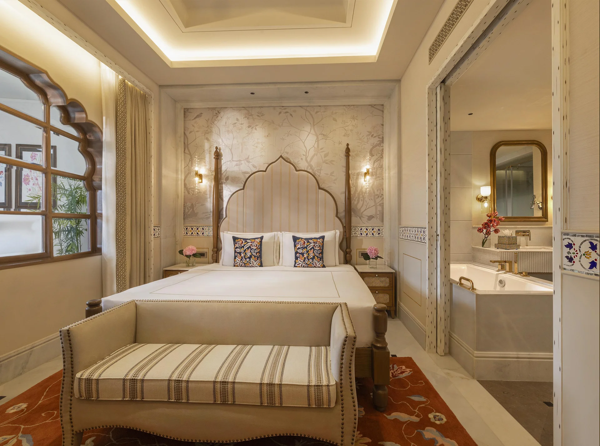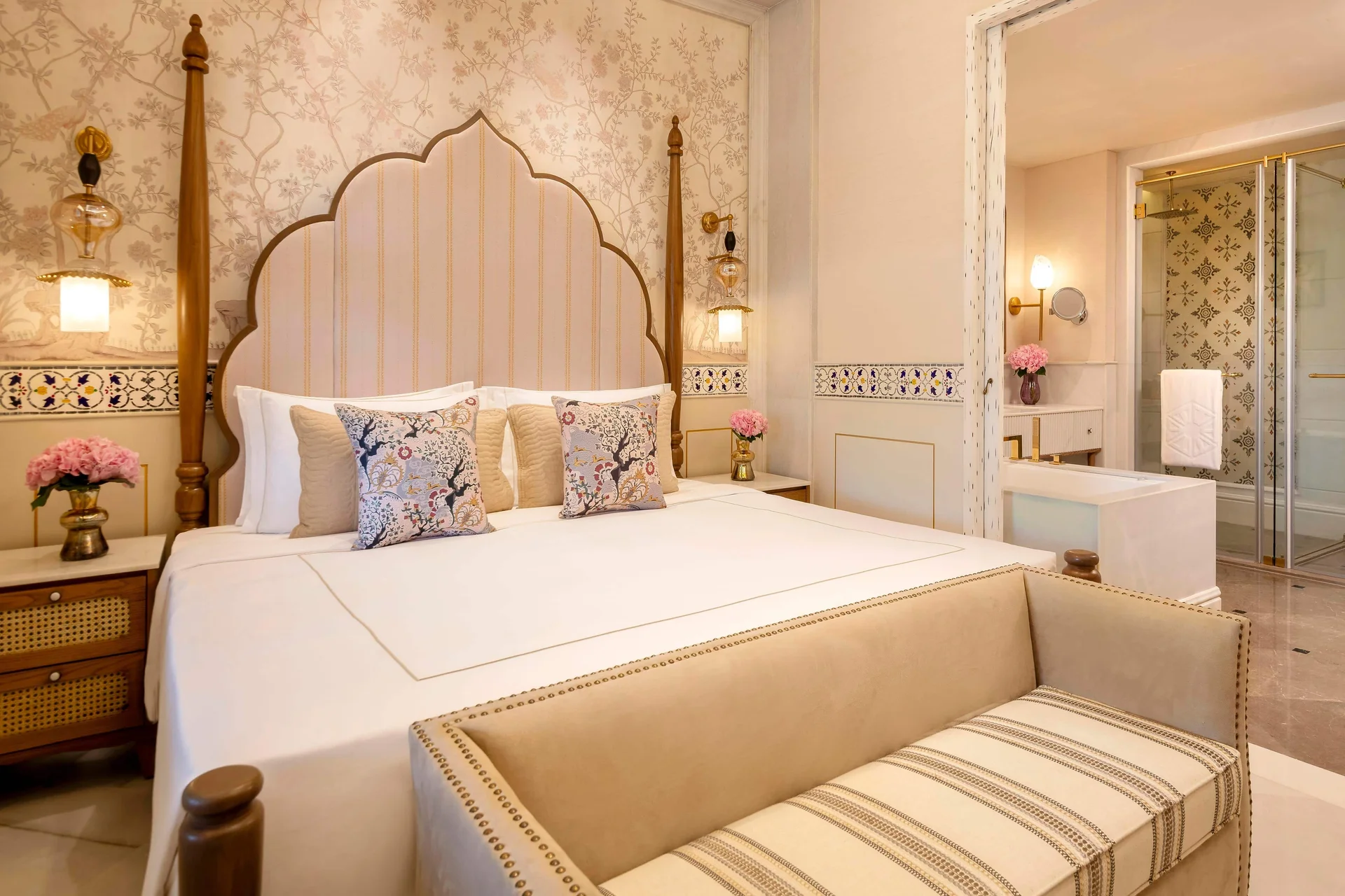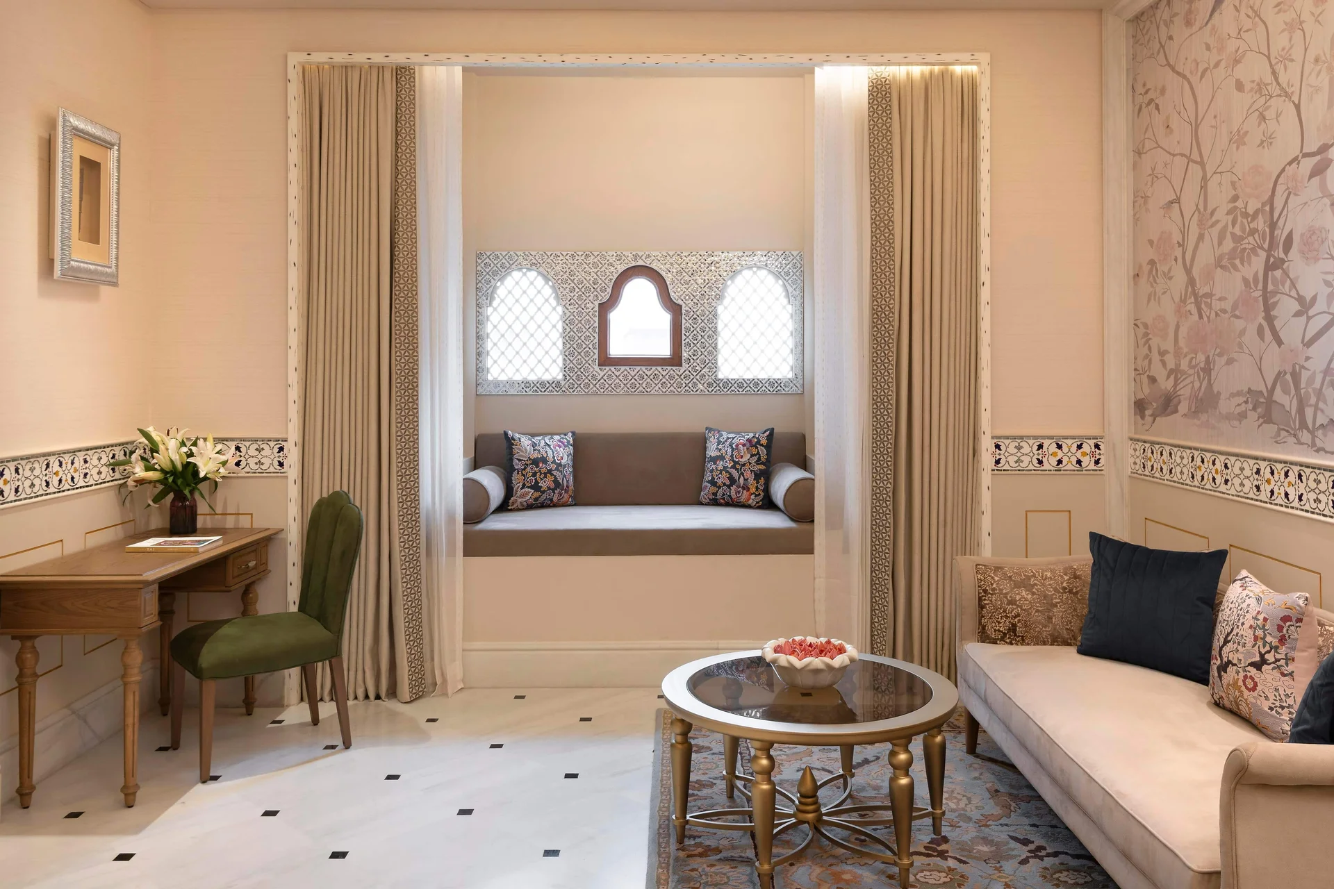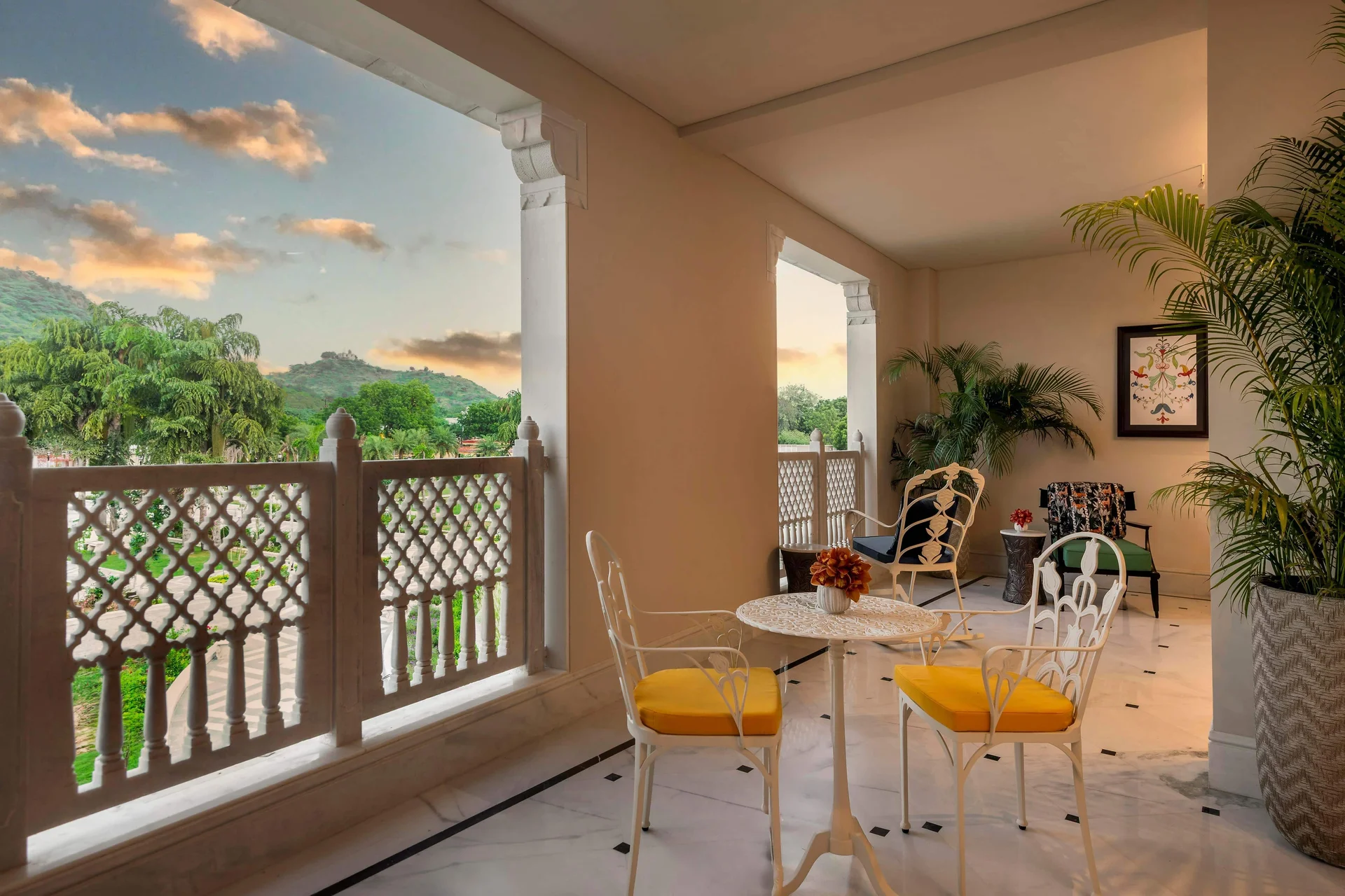 "A grand heritage palace built in 1911, perched on a hilltop overlooking the Fateh Sagar Lake and Aravalli ranges."