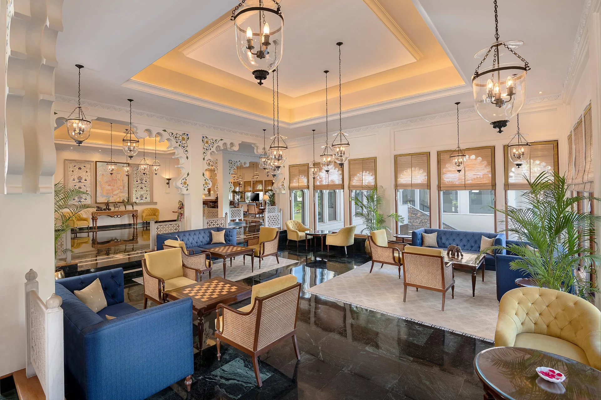Located on the banks of Lake Pichola, approximately 45 minutes from Maharana Pratap Airport. Guests can enjoy a scenic arrival experience, and the hotel is well-connected to the city's main attractions.
