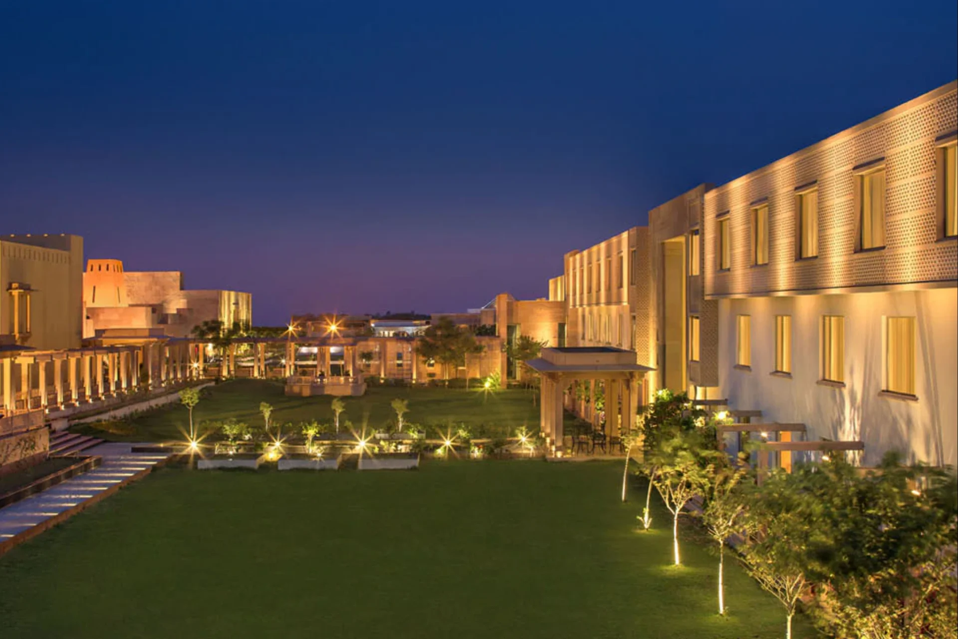 "A tribute to the majestic forts of Rajasthan, offering vast open lawns and ITC's signature culinary excellence on the edge of the Thar."