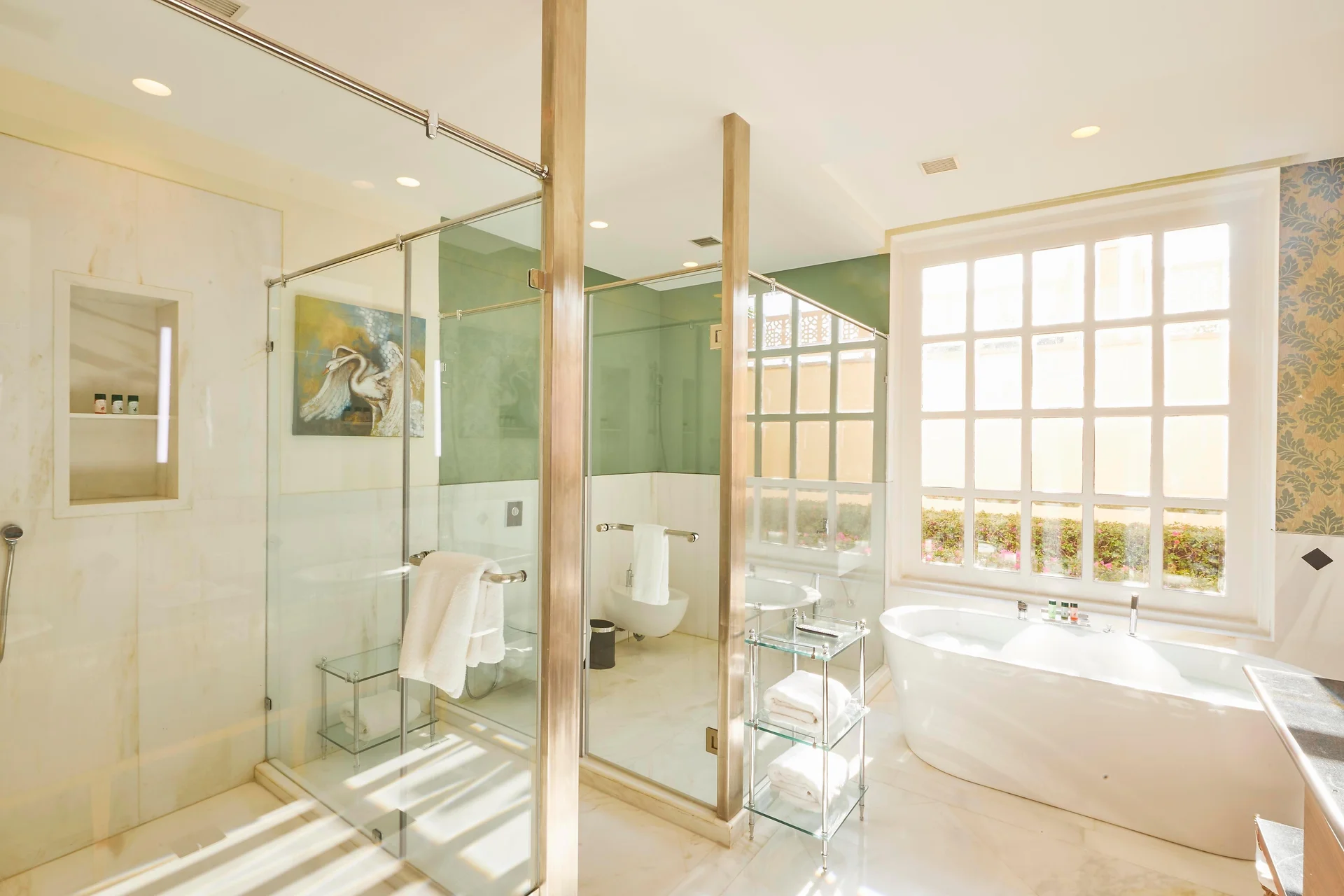 It is located on the outskirts (approx 20-25 mins from center), which is an advantage as it offers huge open spaces and peace that city hotels cannot match.