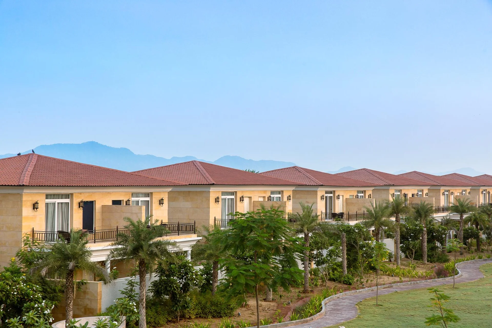 "A serene wellness oasis surrounded by the Aravalli hills, featuring luxury villas with private plunge pools and world-class amenities."